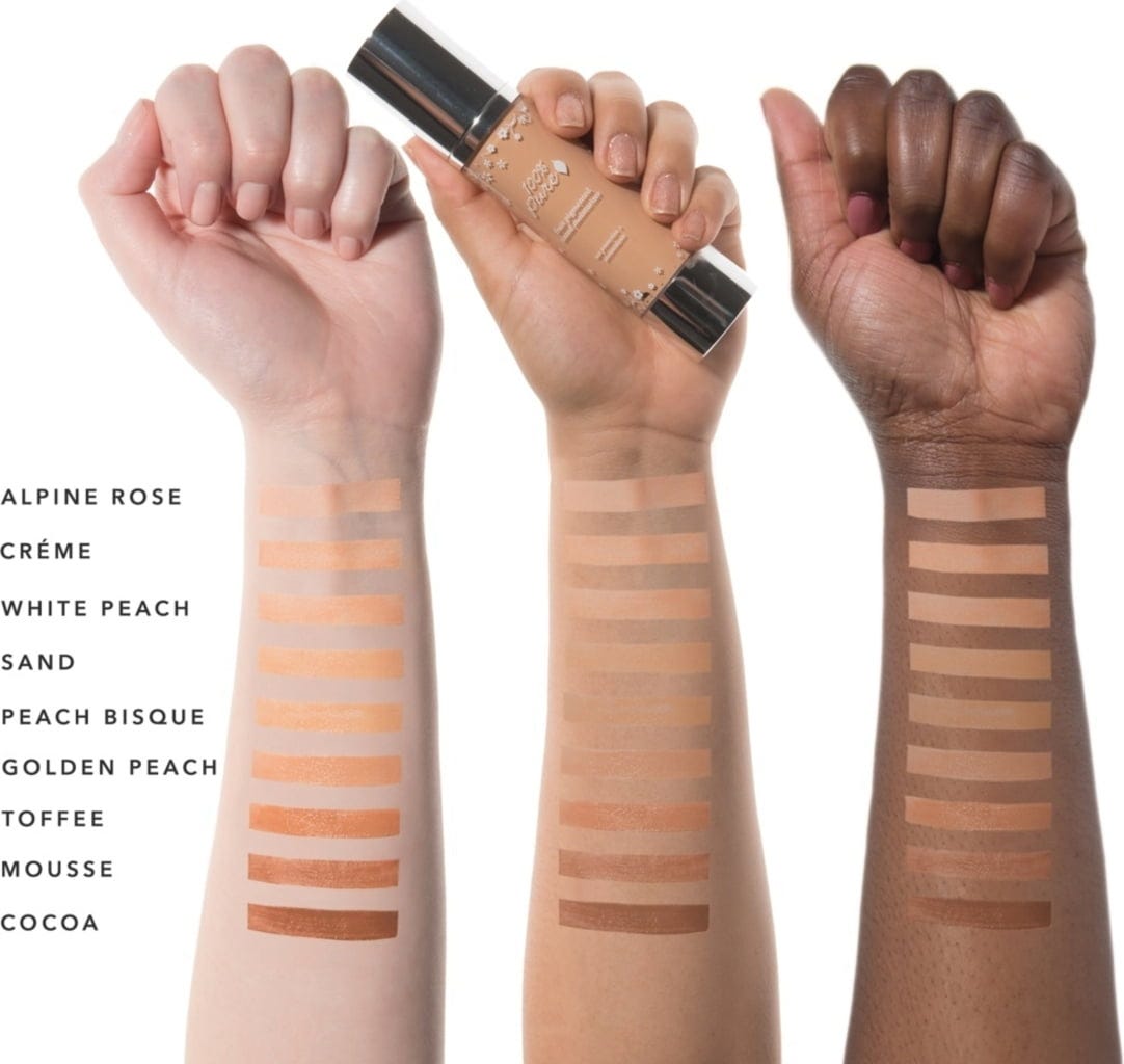 Aloe Barbensis (Aloe Vera) Leaf Juice[1], Cucumis Sativus Fruit (Cucumber) Juice, Euterpe Oleracea Fruit Oil, Punica Granatum (Pomegranate) Seed Oil, Oryza Sativa (Rice) Starch, 15 % Titanium Oxides, 10 % Zinc Oxide, Prunus Persica (Peach) Fruit Extract, Camellia Sinensis Leaf Extract[1], Prunus Armeniaca (Apricot) Fruit, Daucus Carota Sativa (Carrot) Root, Punica Granatum (Pomegranate), Theobroma Cacao (Cocoa) Bean, Lycium Chinense Fruit Extract, Solanum Lycopersicum (Tomato) Fruit/Leaf/Stem, Tocopherol (Vitamin E), Sodium Ascorbate, Euphorbia Cerifera Cera (Candelilla) Extract, Rosmarinus Officinalis Leaf Extract, Origanum Vulgare (Oregano) Leaf Extract, Thymus Vulgaris (Thyme) Flower/Leaf, Lonicera Caprifolium Flower, Lonicera Japonica (Honeysuckle) Flower Extract, Hydrastis Canadensis (Goldenseal), Cinnamomum Zeylanicum Extract