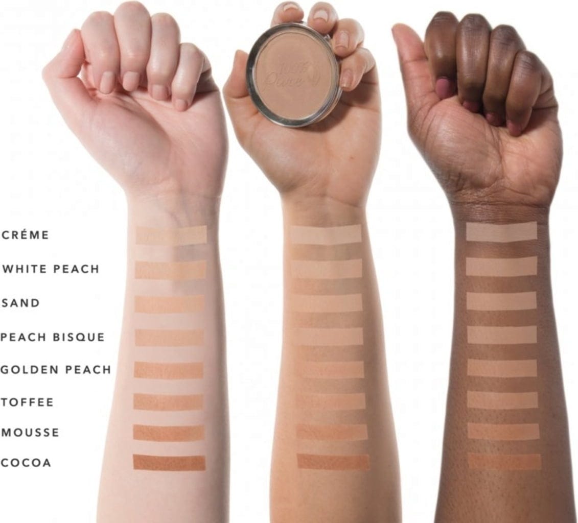 For en vakker, jevn hudtone! Denne spesielt lette foundation-pudderet gir en feilfri hud uten store porer, samtidig som den tilfører huden anti-aldringsvitaminer og antioksidanter. Overflødig hudolje absorberes takket være det inneholdte rispulveret. I tillegg inneholder pudderet avklarende eukalyptus og hudberoligende virkestoffer som ringblomst, kamille og rose. Kan brukes alene eller sammen med den tintede fuktighetskremen fra 100% Pure.