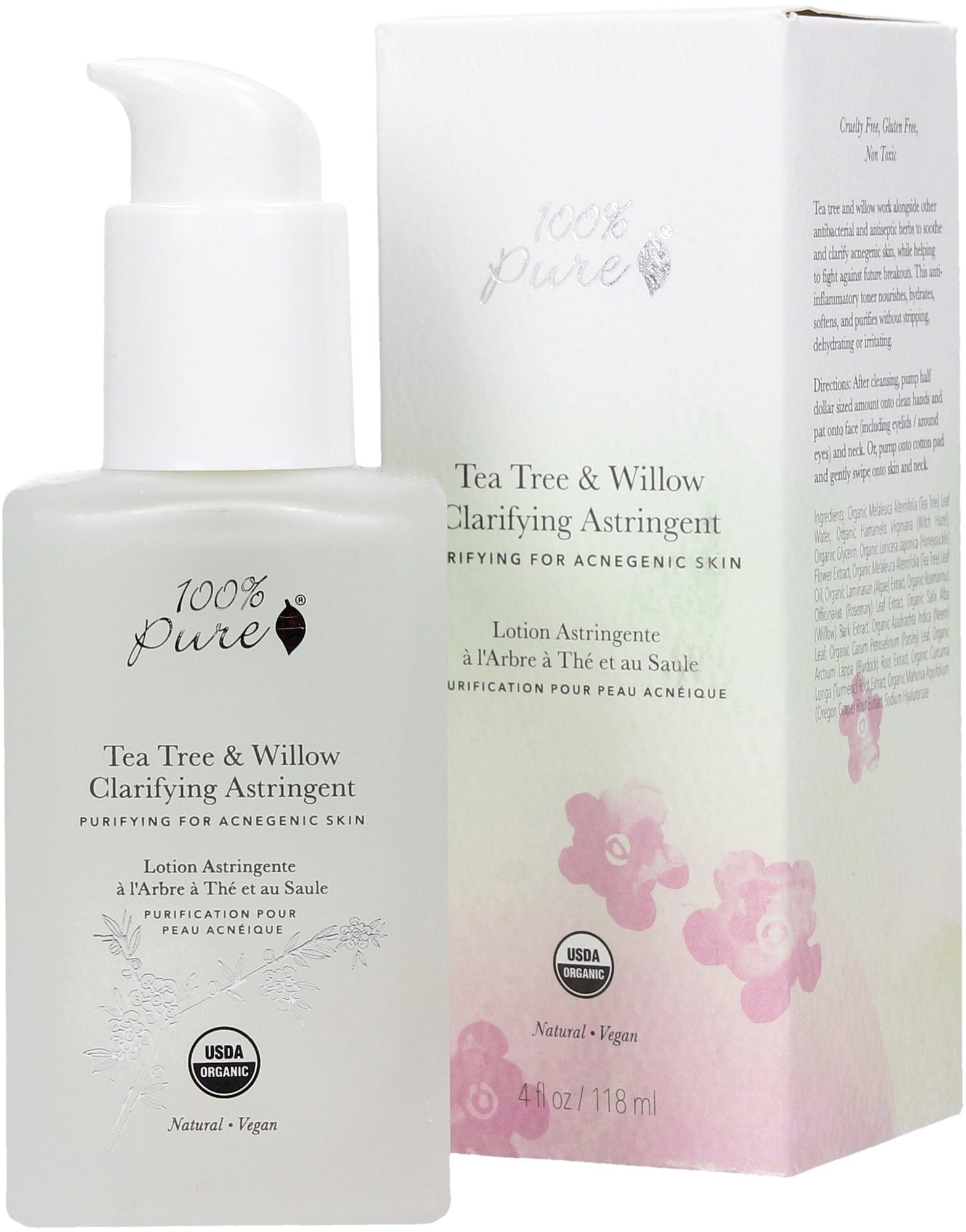 100% Pure Tea Tree & Willow Clarifying Astringent, 118 ml