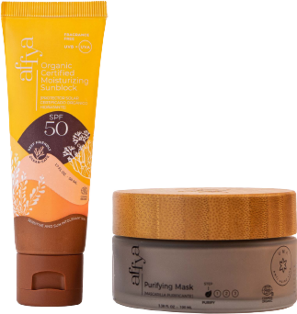 Et sett som følger deg gjennom alle årstider og gir optimal pleie: Solkremen med SPF 50 beskytter huden mot skadelig UV-stråling uten å være fet eller klissete. Beskyttelsesfilteret er helt naturlig og basert på sinkoksid, og er derfor også ufarlig for korallrev. Den rensende masken, på den andre siden, renser huden med hvit og svart leire og lar den stråle i sin naturlige skjønnhet. Den regulerer talgproduksjonen, klarner og gir huden mykhet.