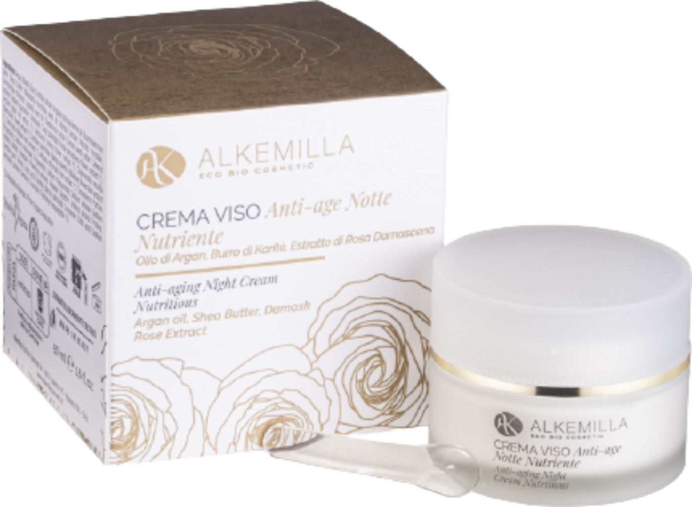 Denne nattkremen med arganolje, sheasmør, jojoba- og makadamiaolje trenger dypt inn i de nedre hudlagene og virker reduserende på rynker og andre aldringstegn. Formuleringen gir næring til huden og tilfører rikelig med fuktighet. Ekstrakter fra damaskusrose kompletterer formuleringen, støtter regenerering, og etterlater huden strålende og jevn.