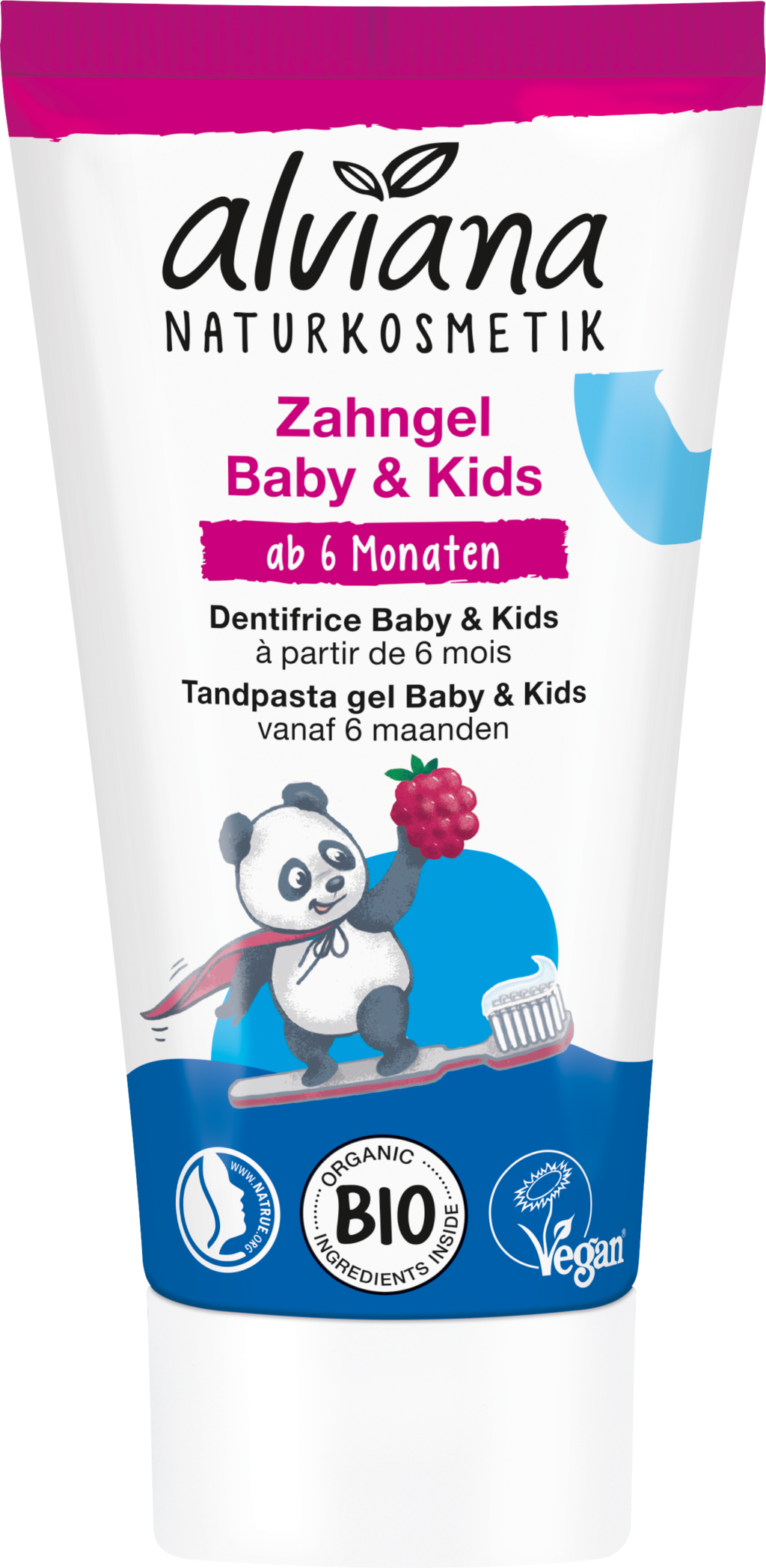 Denne tanngeleen kan brukes fra 6 måneder og er dermed perfekt for de første små tennene. Den milde, fluorfrie formelen er beriket med pleiende økologisk aloe vera og fjerner tannplakk skånsomt uten å skade tannemaljen. Den fruktige bringebærsmaken gjør tannpussen til en smakfull opplevelse og gir ekstra motivasjon for de små.