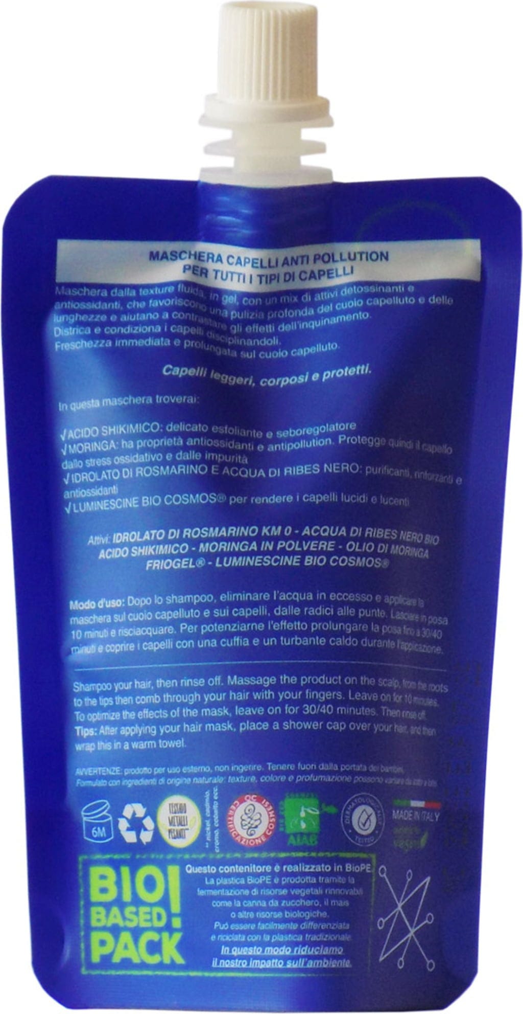 Produktet er formulert for alle hårtyper og tilbyr en flytende gel-tekstur som er enkel å fordele i håret. Formuleringen inneholder en blanding av beskyttende aktive stoffer som shikimisyre, moringa og plantevann fra rosmarin samt solbær. Deres synergi gir klargjørende egenskaper for hodebunnen og lengdene og beskytter mot atmosfærisk forurensning. Samtidig pleies og temmes håret.