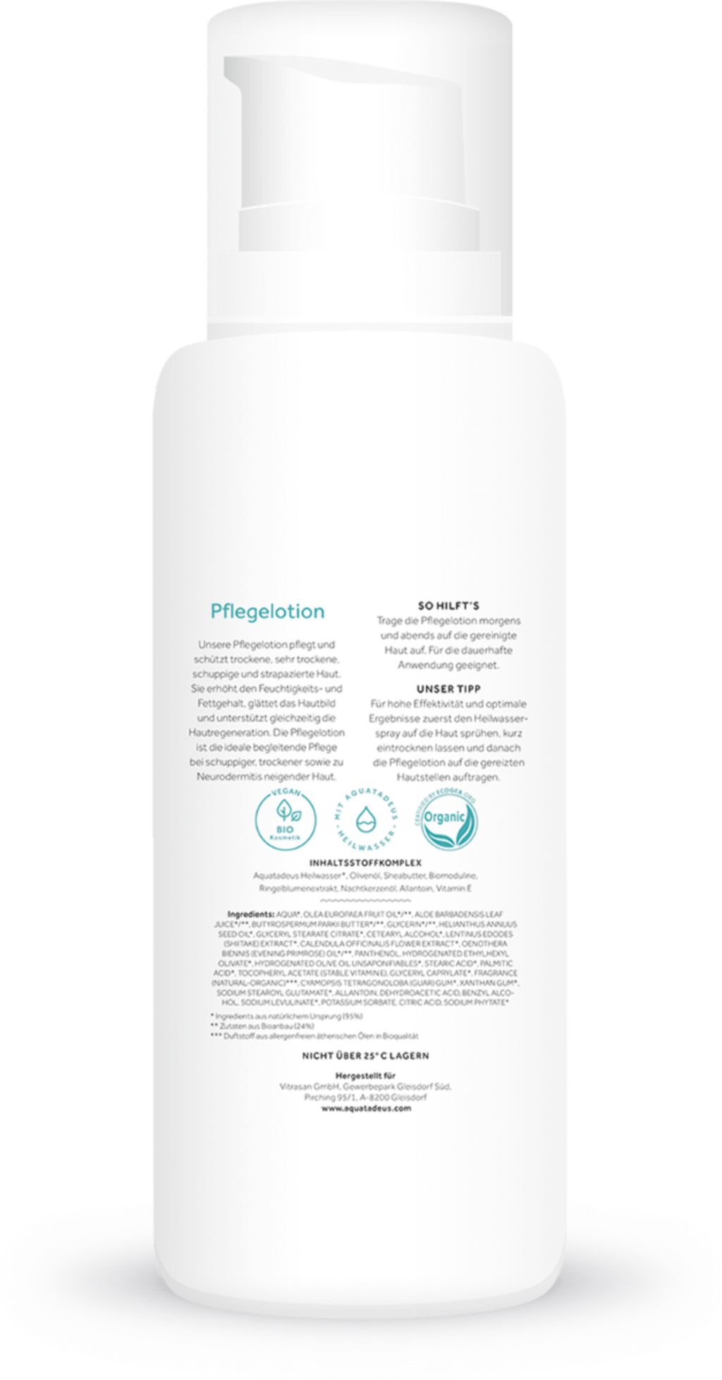 For veldig tørr, ru eller irritert hud er oh lucky skin Lotion den optimale pleien. Formelen med dexpantenol, biomoduliner, vitamin E, ringblomstekstrakter og Aquatadeus helsevann gir intensiv pleie, tilfører huden fuktighet og støtter hudens barriere.