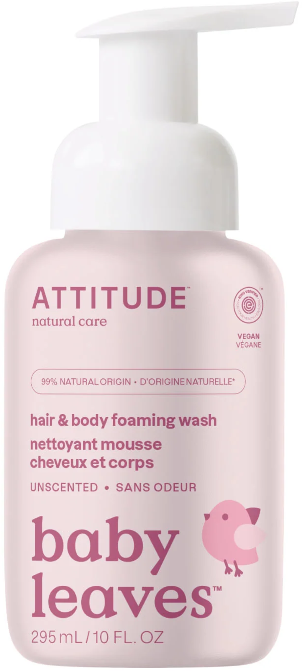 ATTITUDE baby leaves 2in1 Hår- og Kroppsskumvask, Fragrance Free (295 ml)