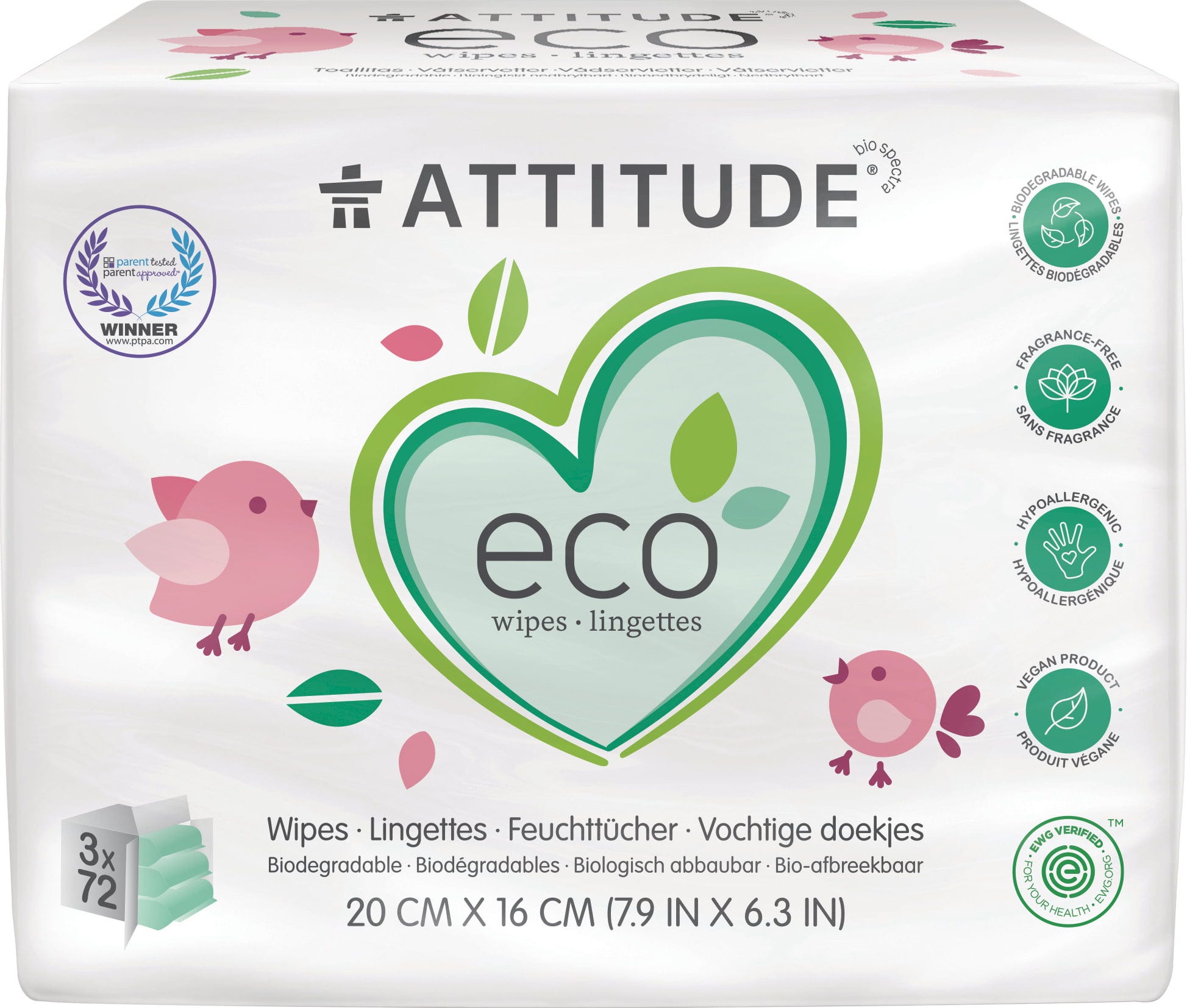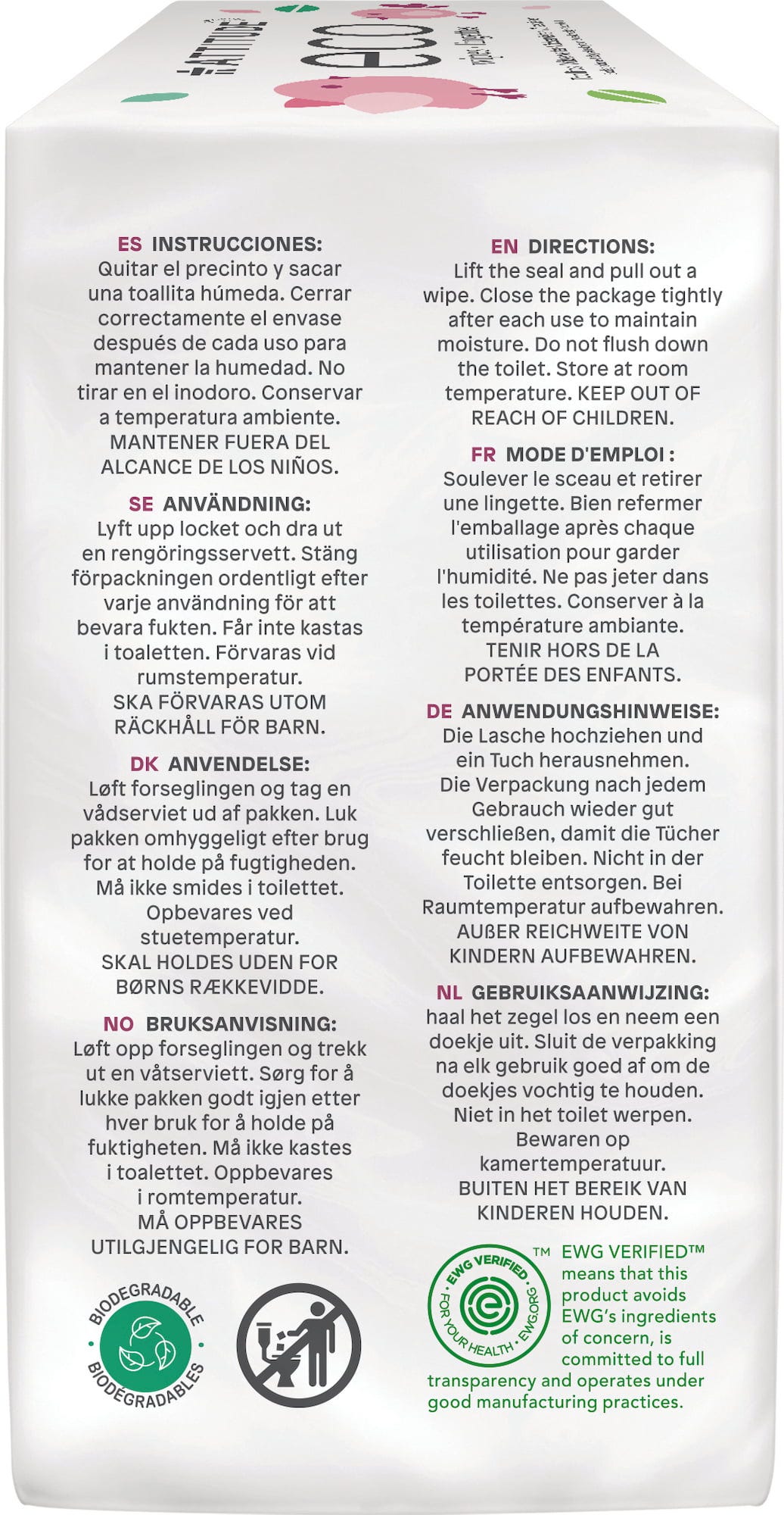 Våtserviettene fra Attitude er laget av biologisk bærekraftige cellulosefibre og er fri for syntetiske duftstoffer. De har også en svært god hudtoleranse og er fullstendig biologisk nedbrytbare.