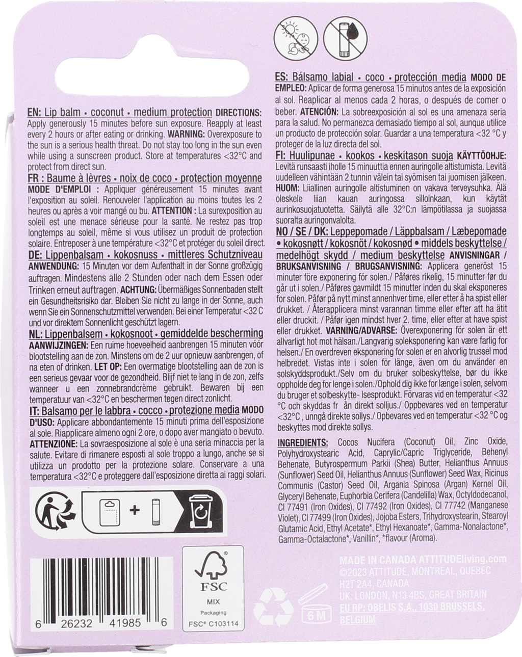 ATTITUDE Leppepomade Kokosnøtt SPF 15, 8,50 g