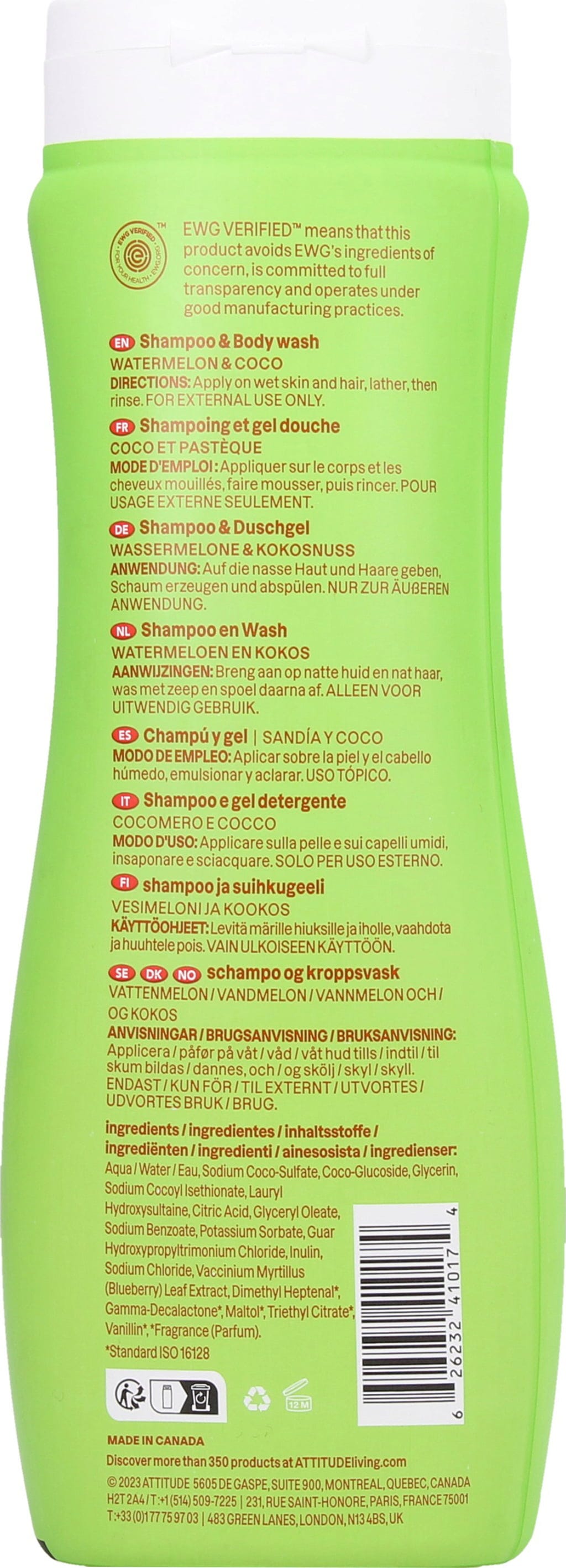 ATTITUDE lille leaves Sjampo & Body Wash Watermelon & Coco, 473 ml