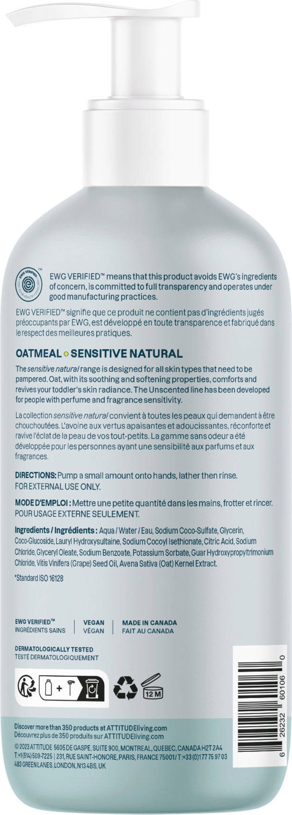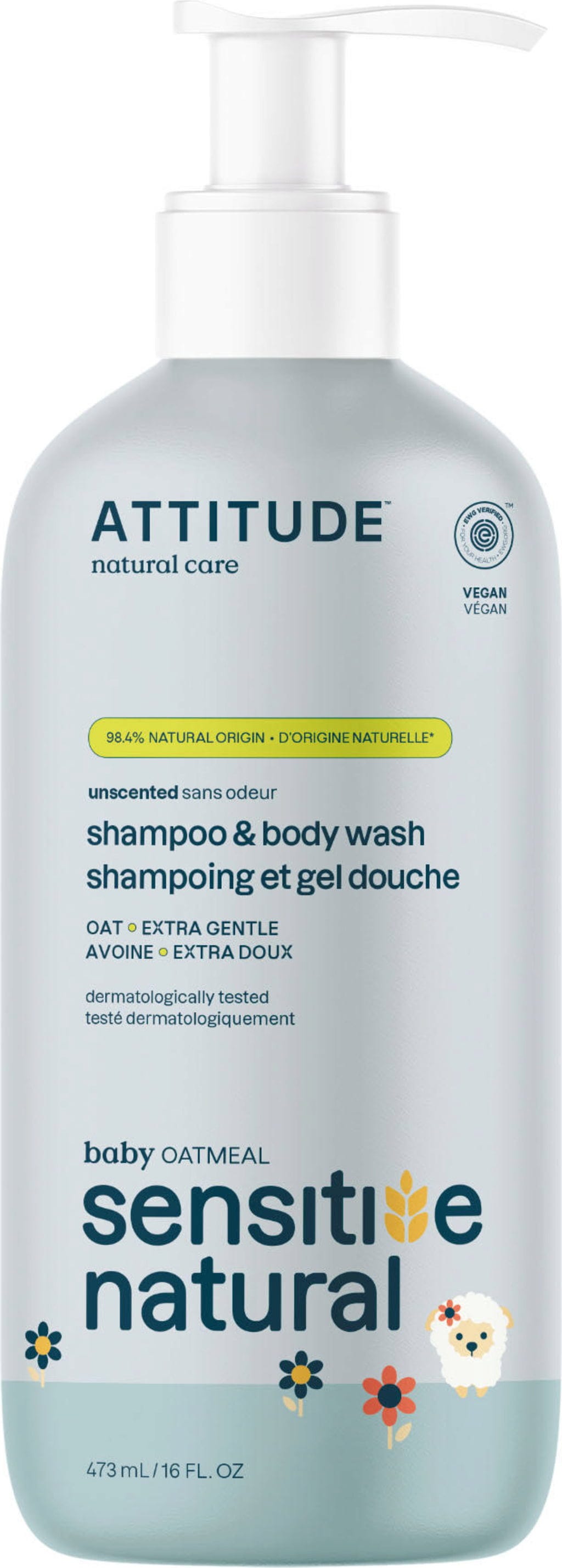 ATTITUDE Oatmeal Sensitive Baby 2in1 Hår- og kroppsvask, 473 ml
