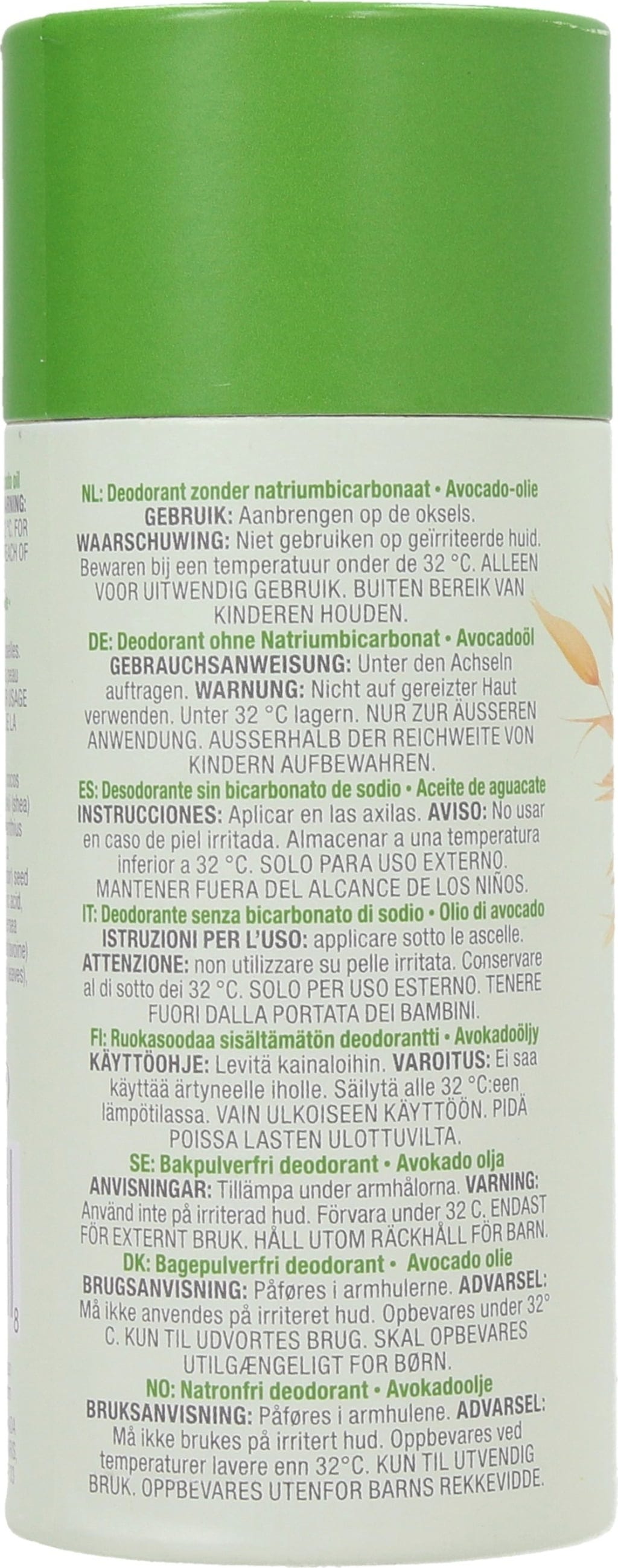 Den milde deodoranten er beriket med pleiende avokadoolje og tilbyr en frisk duft. Takket være formuleringen med sheasmør og kokosolje blir den delikate huden under armene pleiet og tilført fuktighet, mens magnesiumhydroksid holder deg tørr. Miljøpluss: Papiremballasjen er biologisk nedbrytbar.