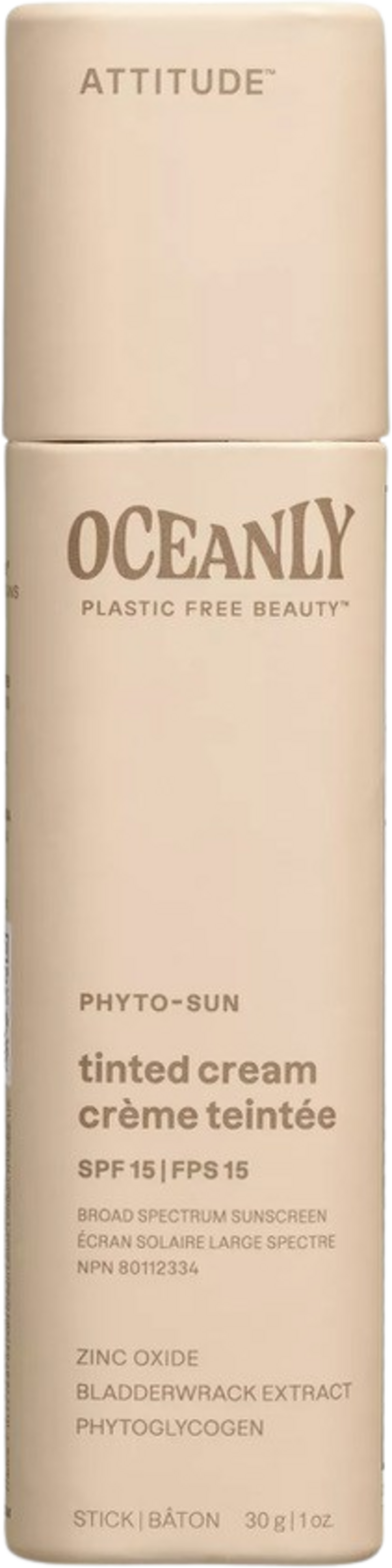 ATTITUDE Oceanly PHYTO-SUN Tinted Moisturizing Sunscreen SPF 15, 30 g