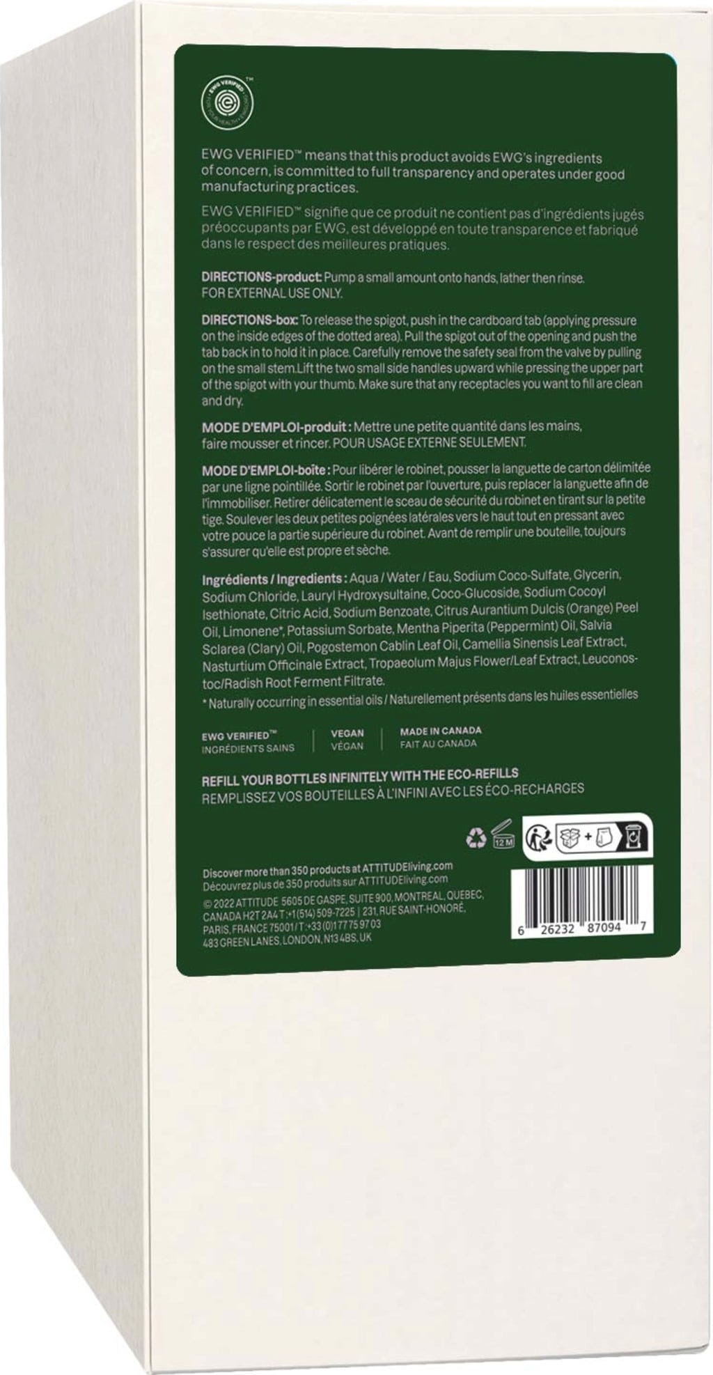 ATTITUDE Super Leaves Håndsåpe Peppermint & Sweet Orange, Refill 2 l