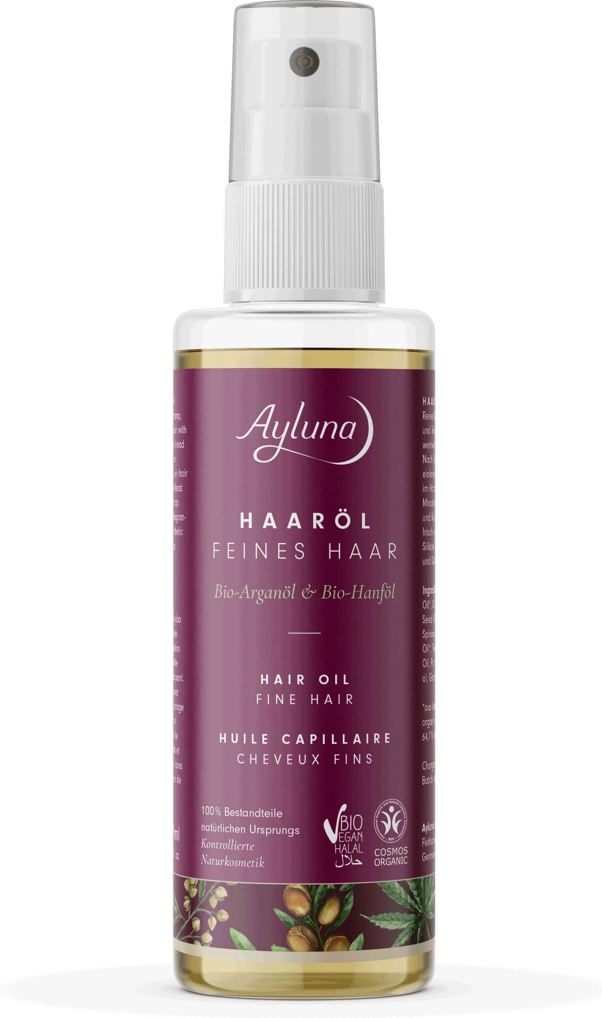 Ayluna Hårolje med økologisk arganolje og økologisk hampolje, 100 ml