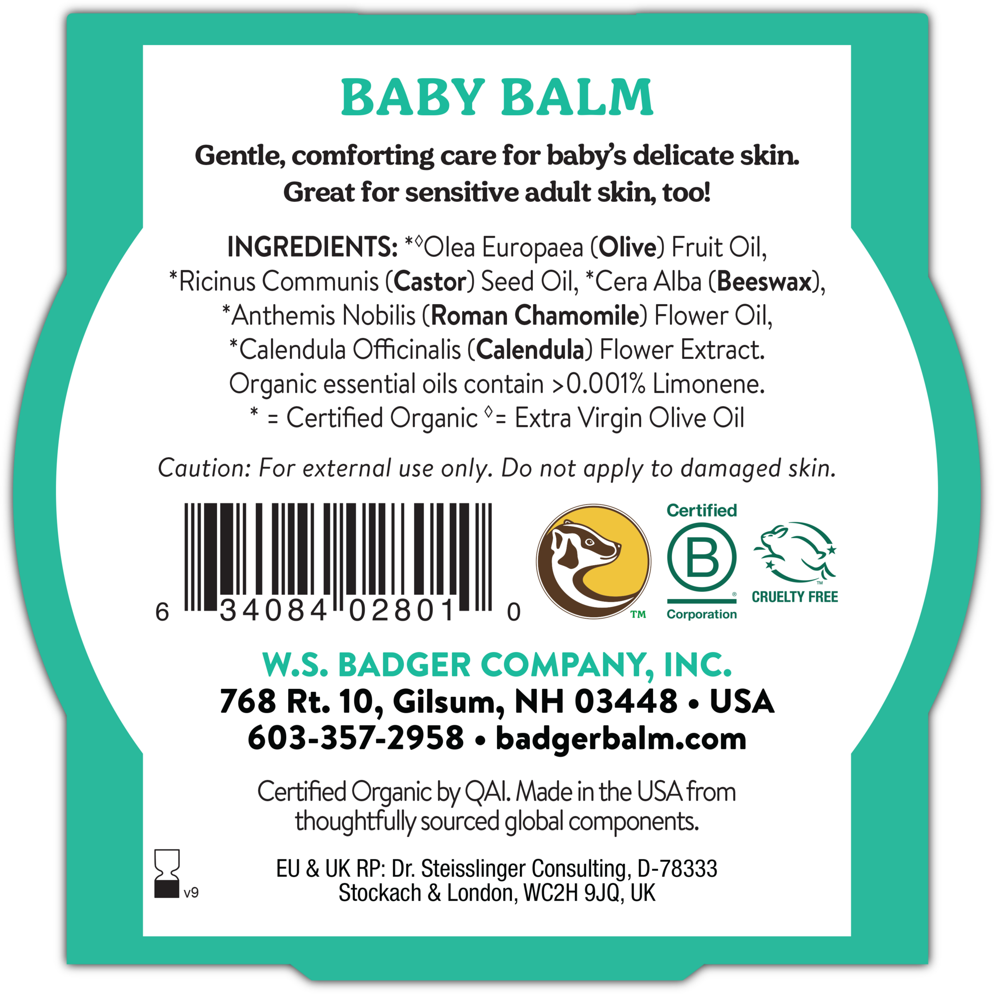 Den milde balsamen fra Badger Balm omslutter den sensitive huden til våre kjære og pleier den smidig og myk. Den optimale kombinasjonen av olivenolje, ringblomst, bivoks samt ricinus- og kamilleolje tilfører fuktighet og gir en behagelig hudfølelse.