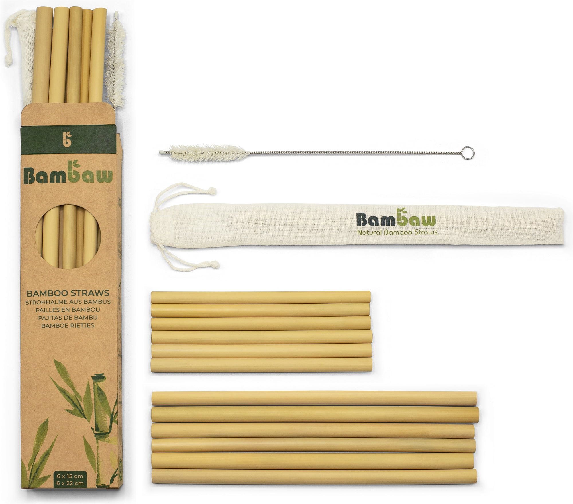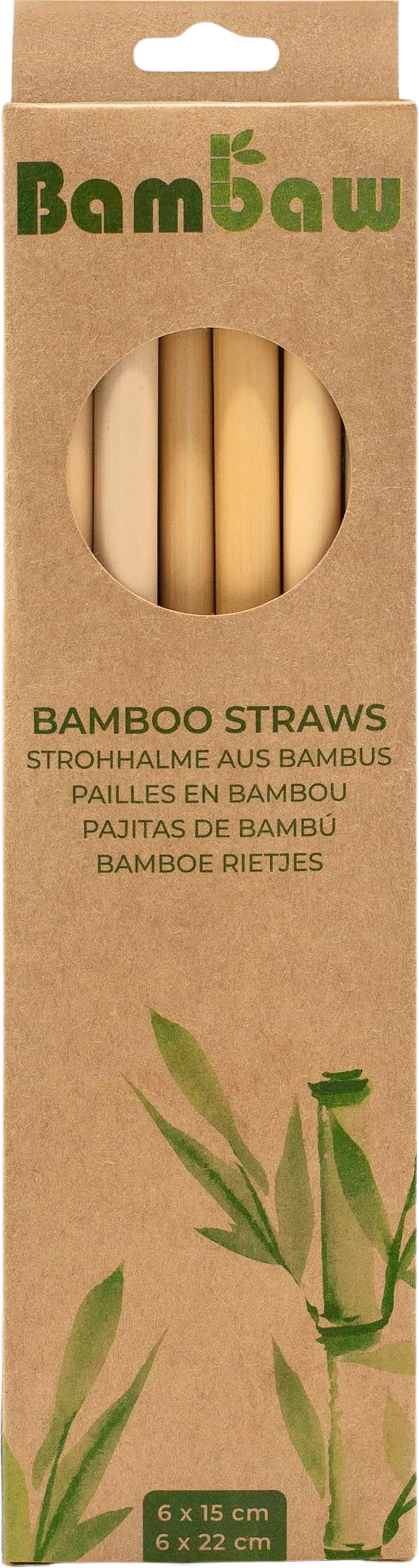 Bambaw Bambus sugerør i eske, 12 x 15 cm & 22 cm (12 Stk)
