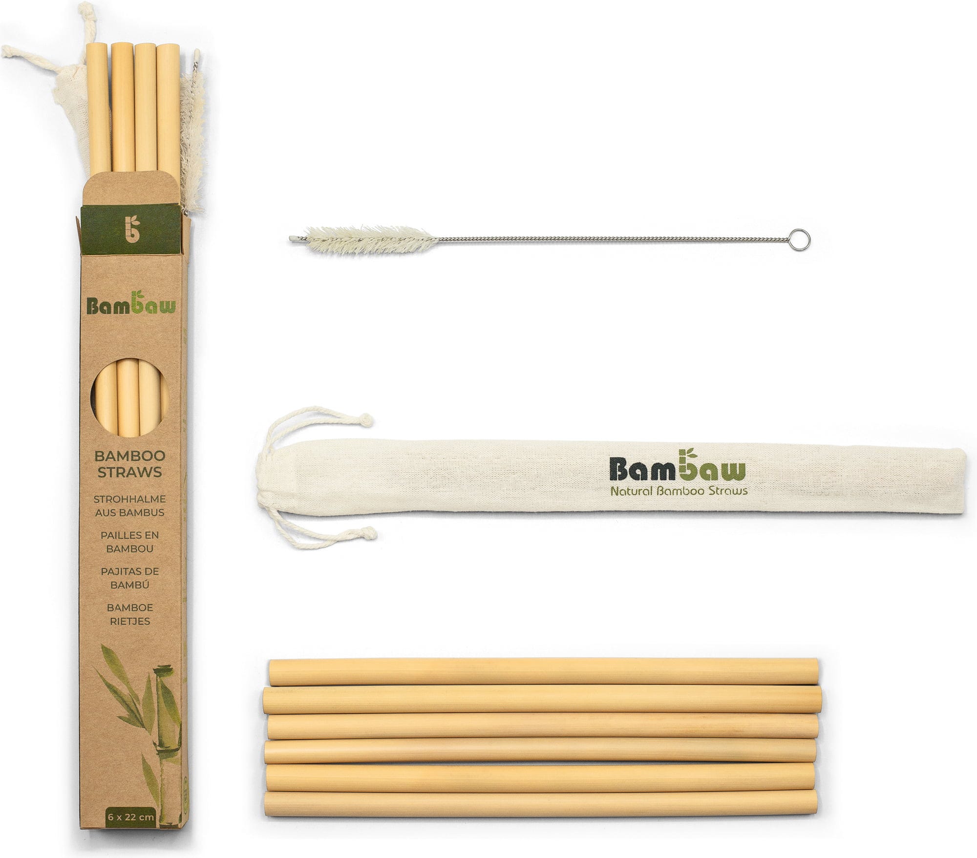 Bambaw Bambus sugerør i eske, 6 x 22 cm (6 Stk)