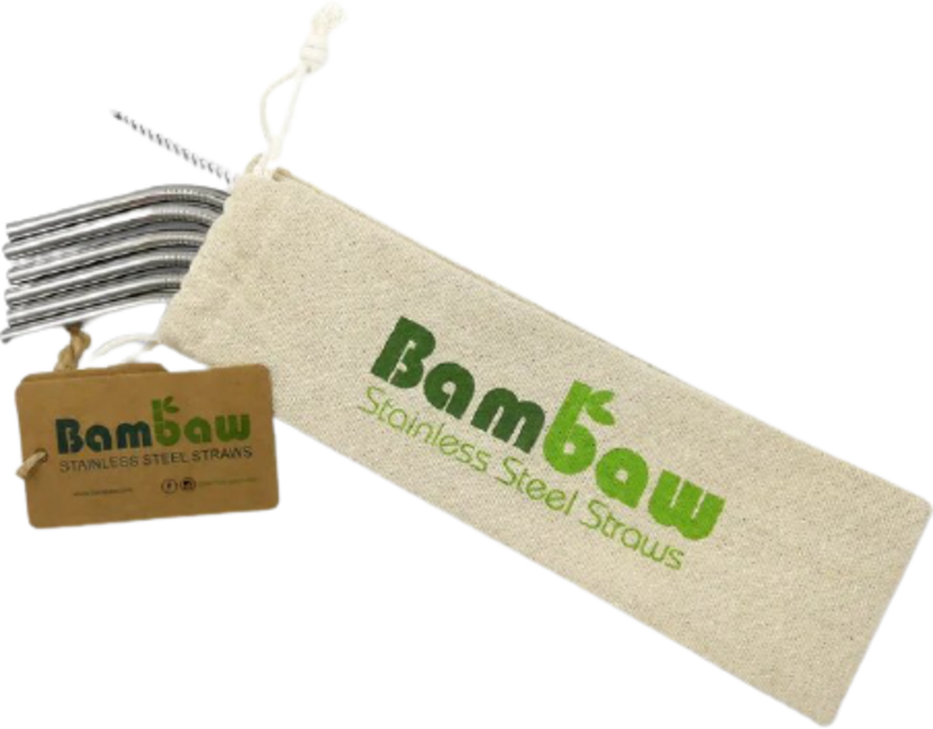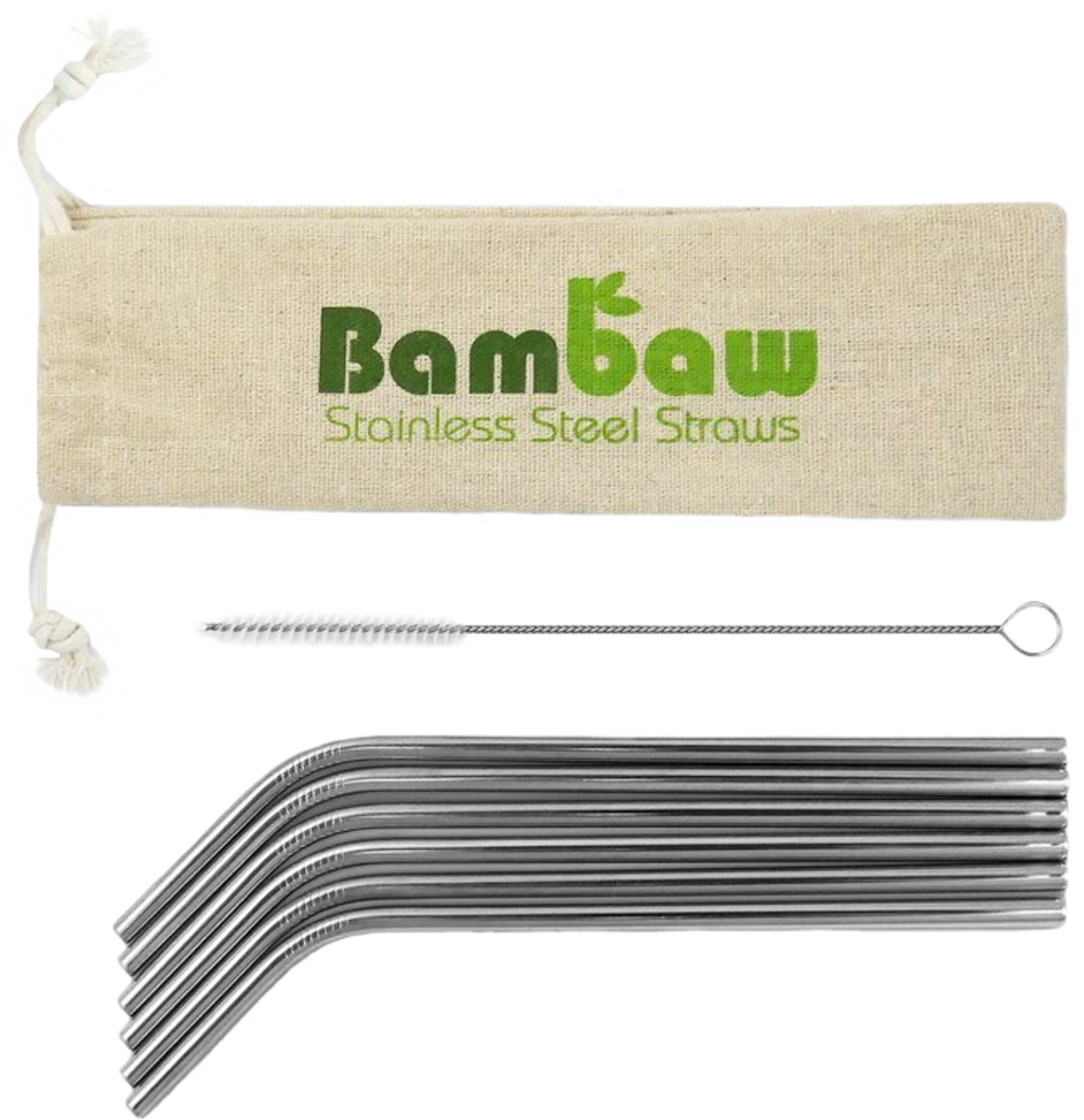 Bambaw Sett med sugerør i rustfritt stål