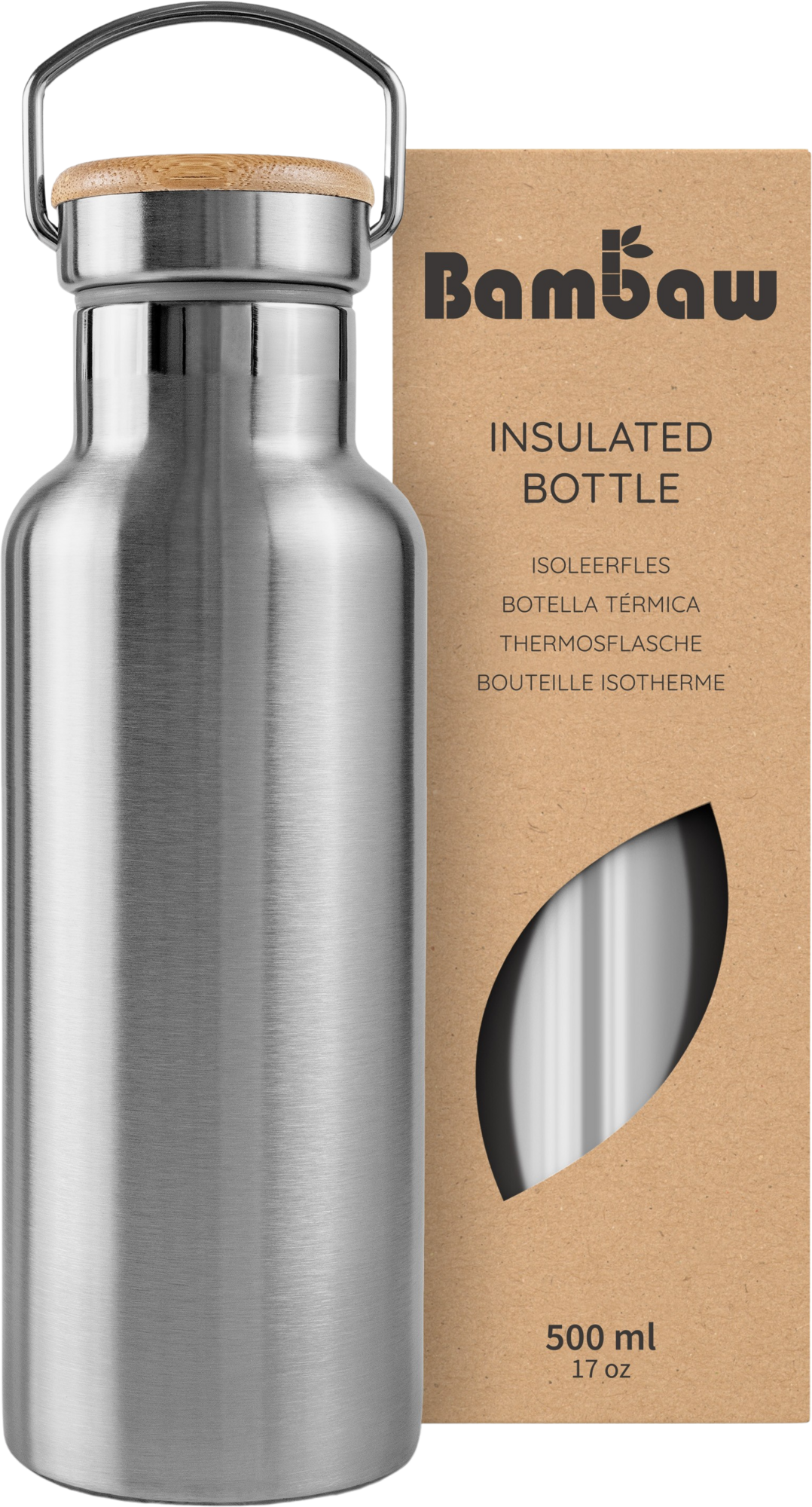 Bambaw Termoflaske i rustfritt stål 500 ml, Natural Steel