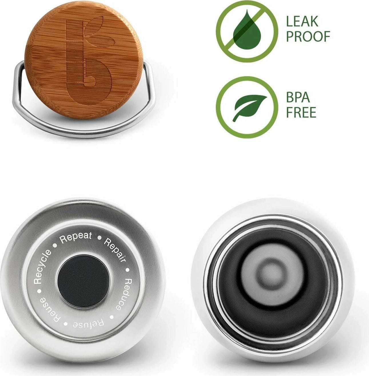 Denne termoflasken i rustfritt stål er den perfekte følgesvenn året rundt. På varme sommerdager holder flasken drikker kalde i opptil 24 timer, og om vinteren holder den drikker varme i opptil 12 timer. Flasken er lukket med et lokk av bambus, og åpningen er stor nok til å romme isbiter, teegg eller frukt. Når flasken er tom, kan den enkelt rengjøres med en flaskebørste. Dessuten er den helsemessig trygg og BPA-fri, slik at ingen giftige kjemikalier kan komme inn i drikkene dine.