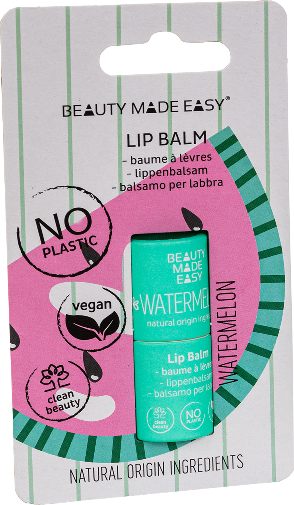 BEAUTY MADE EASY Paper Tube Lip Balm Sommertid, Watermelon (5,50 g)