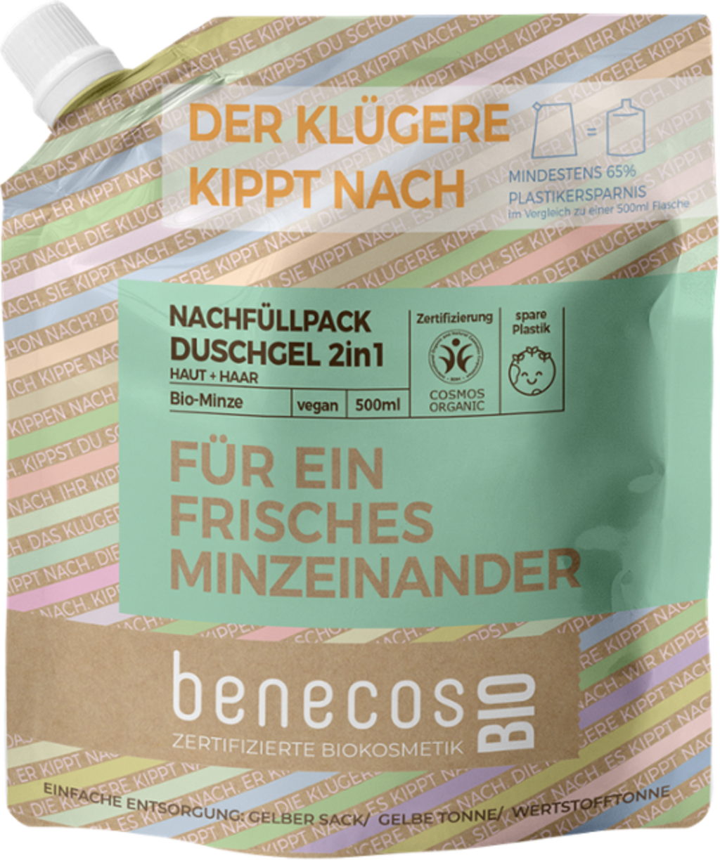 benecos benecosBIO 2in1 dusjgel "For en frisk start med mynte", Refill 500 ml