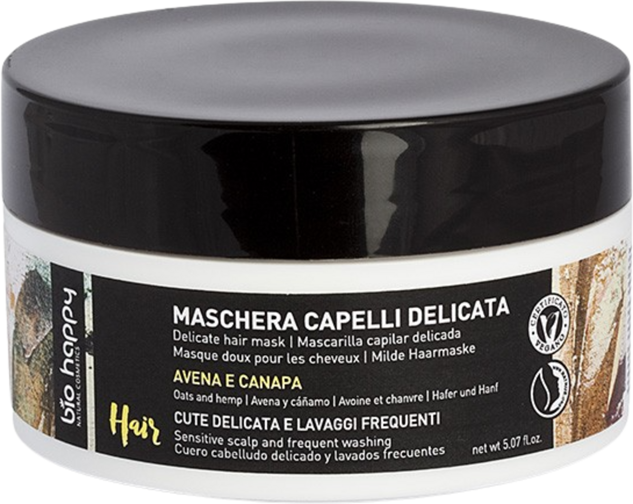 Denne fuktighetsgivende hårmasken inneholder økologiske ekstrakter fra hamp og havre, som gir optimal pleie til håret og sensitiv hodebunn. Den bidrar til ideell smidighet og glans, og forbedrer hårets grebarhet.