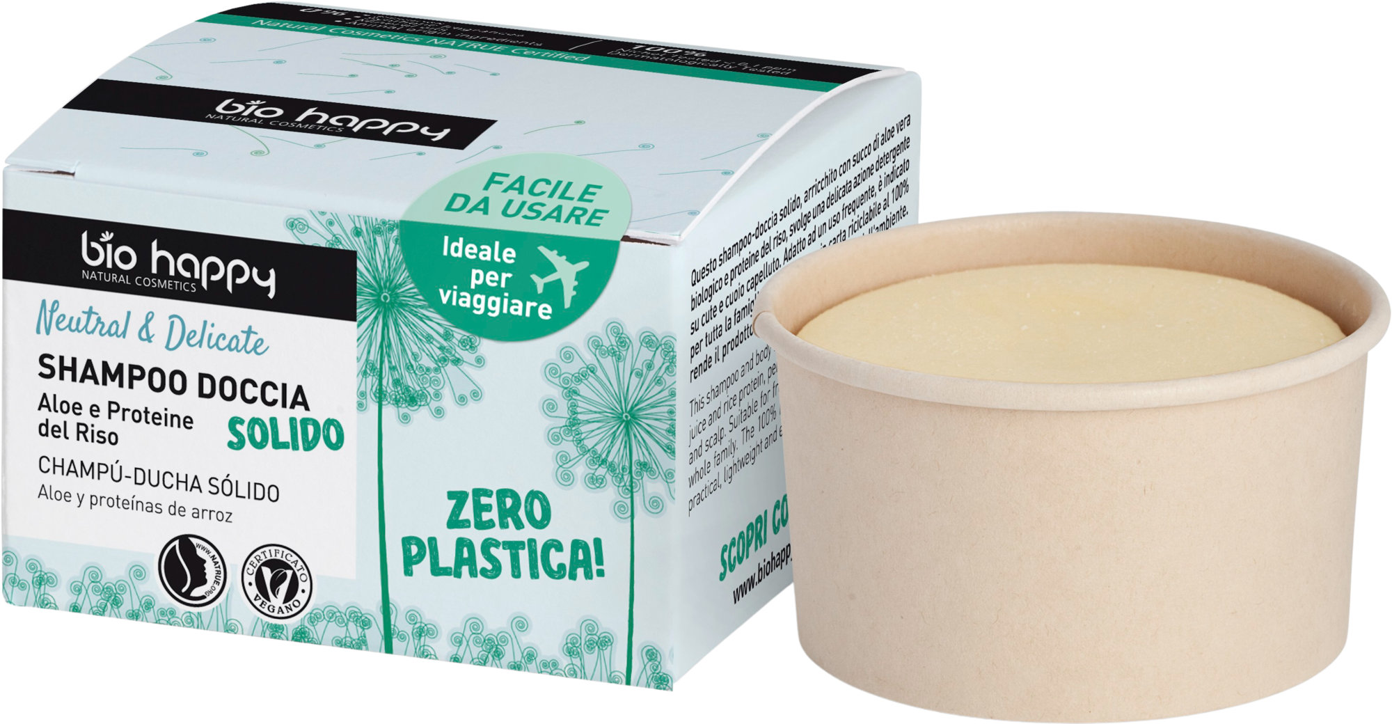 Dette faste 2in1-produktet er beriket med økologisk aloe vera og risproteiner, og gir en spesielt mild rengjøring for både hår og hud. Det er egnet for hyppig bruk og passer for hele familien. Med plastfri emballasje er det praktisk, enkelt å bruke og miljøvennlig.