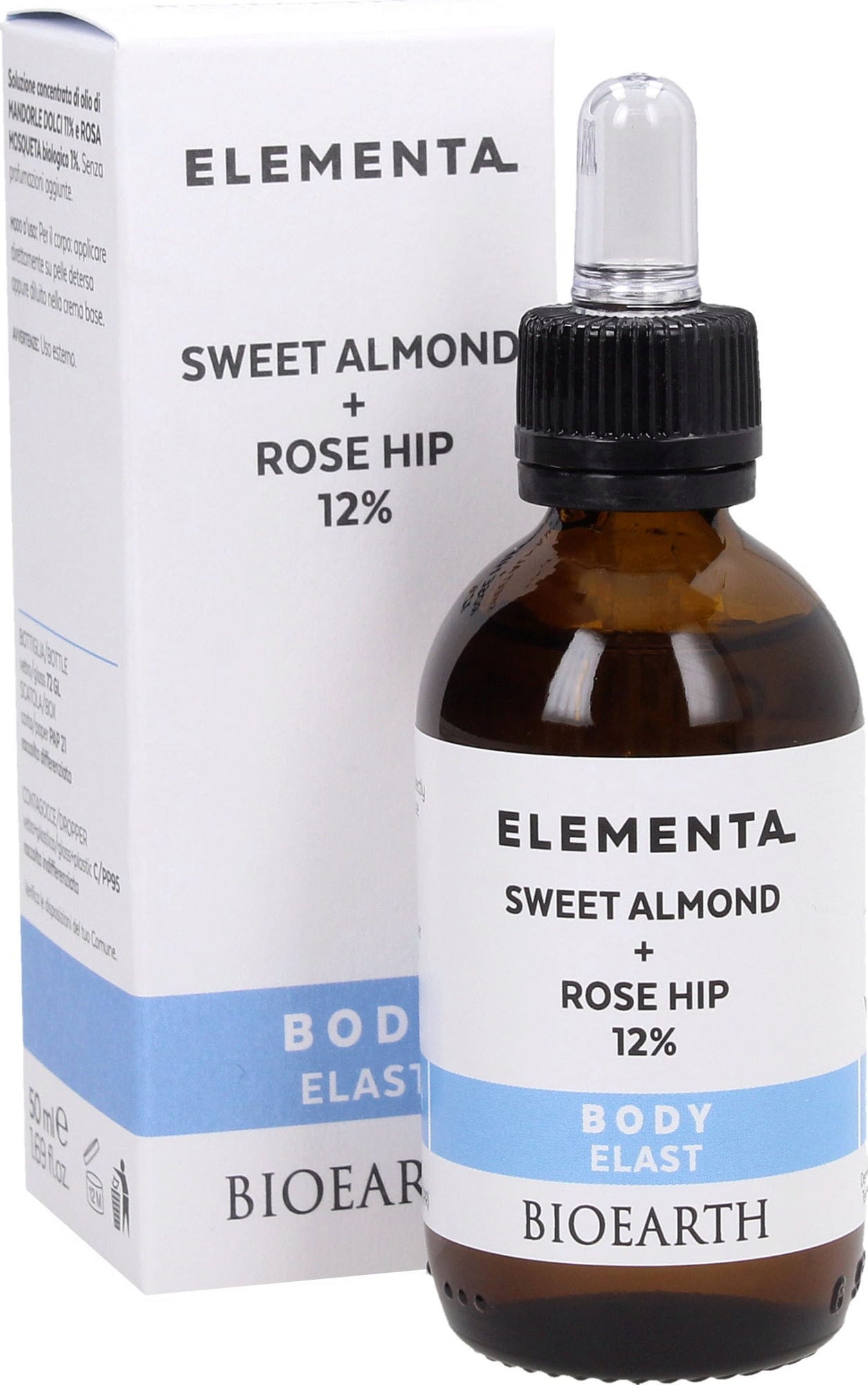 BIOEARTH ELEMENTA BODY ELAST Søtmandel + Villrose 12%, 50 ml