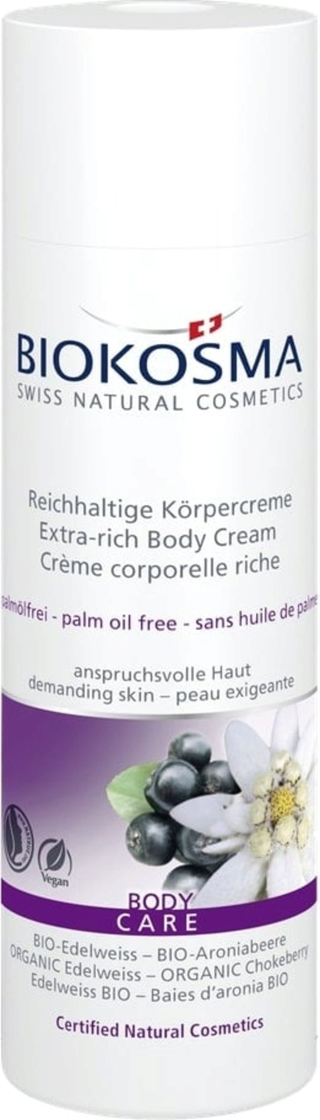 BIOKOSMA Næringsrik kroppskrem med økologisk edelweiss og aronibær, 200 ml