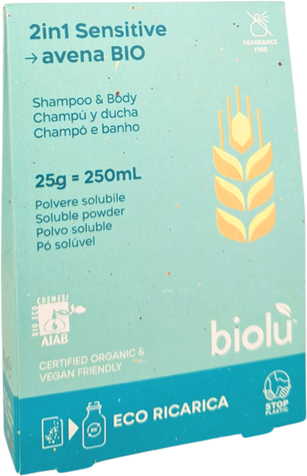 biolù 2in1 Shampoo og Dusjgel Sensitiv Pulver Refill, 25 g