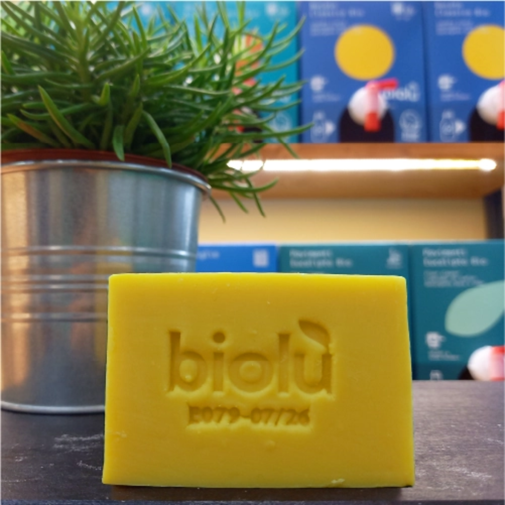 Dette faste såpestykket er fri for tensider og inneholder økologisk sitronekstrakt. Det er produsert ved en skånsom kaldprosess og skåret for hånd. Takket være sammensetningen er det ideelt for kombinert hud og har sebumregulerende samt klargjørende egenskaper. Såpen passer for ansikt, kropp og hender, og kan til og med brukes som en allsidig rengjøringsmiddel i hjemmet.