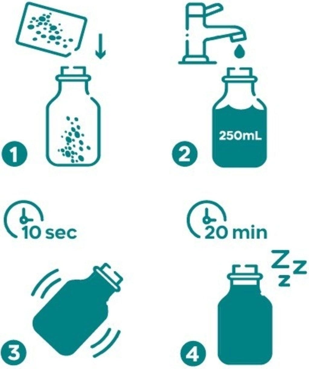 - Ha i innholdet av posen og tilsett 250 ml vann.