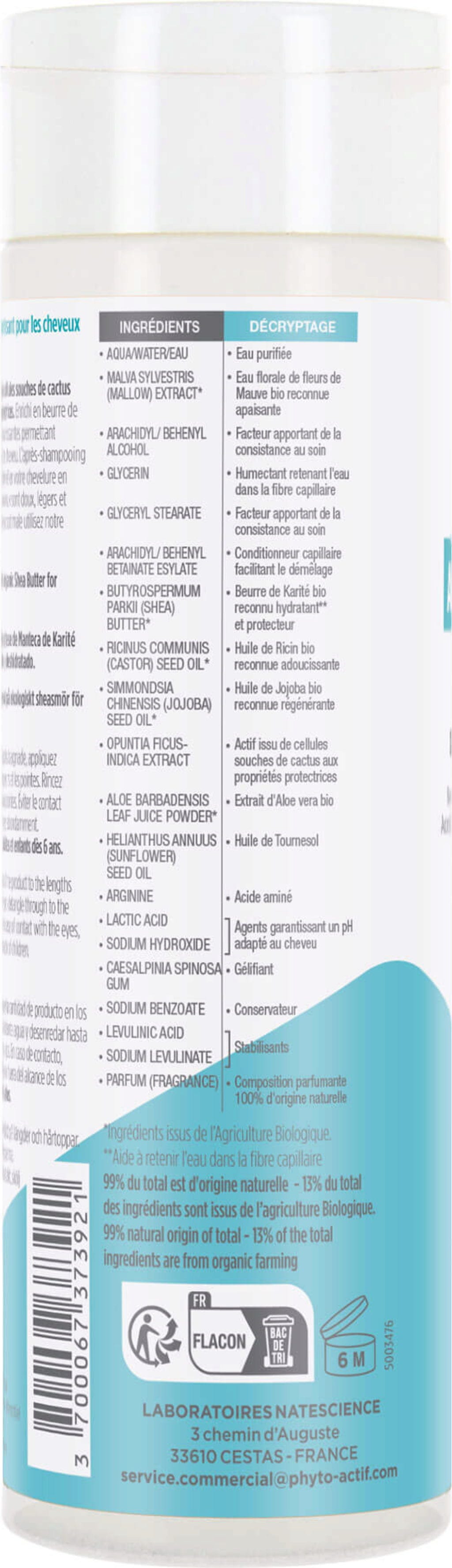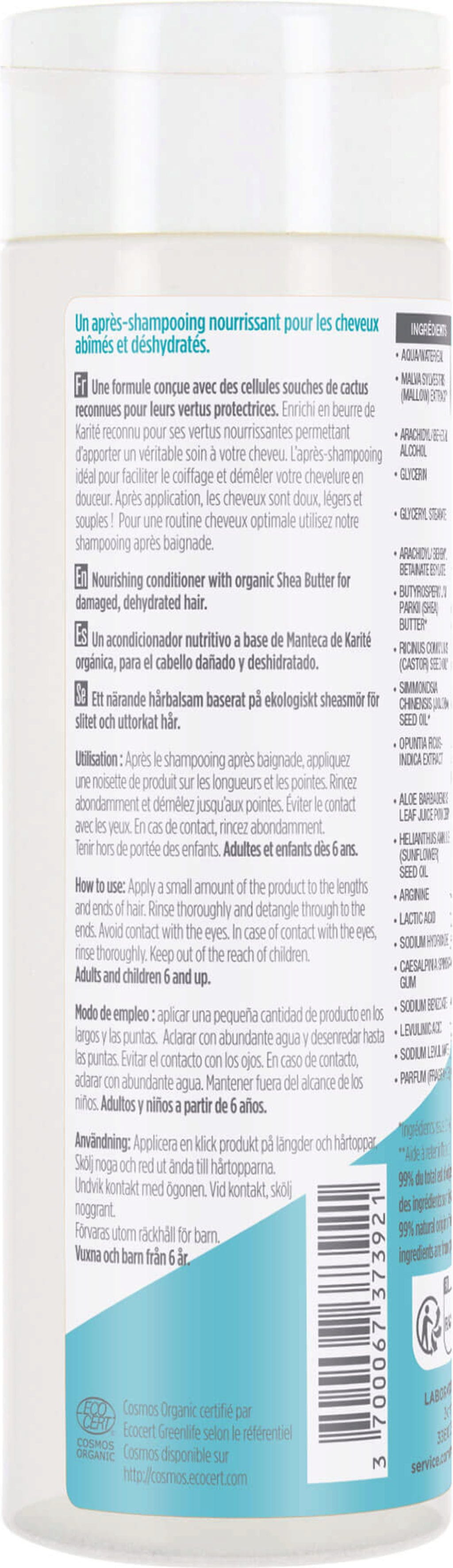 Takket være en formel med kaktusstamceller og sheasmør gir denne balsamen nærende og beskyttende pleie til tørt og skadet hår etter en lang sommerdag. Formelen gjør det også enklere å gre gjennom håret uten å skade det.