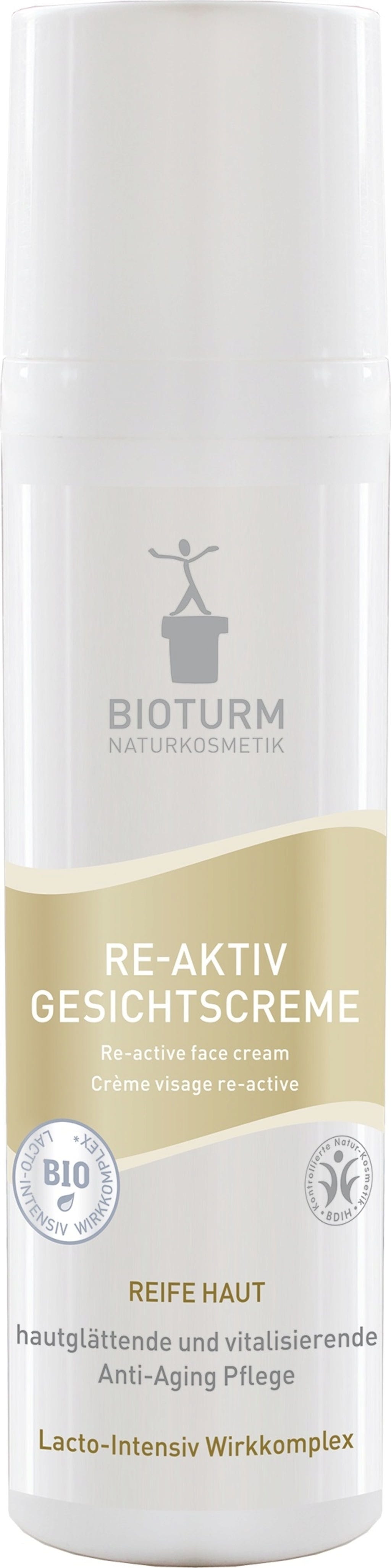 Re-Aktiv-kremen fra BIOTURM® kombinerer naturlig anti-aldringspleie med beskyttelse mot ytre stressfaktorer, slik som miljøpåvirkninger. De høykvalitative planteoljene og virkesubstansene i produktet gir pleiende og intensivt fuktighetsgivende egenskaper. Tørr og moden hud trenger ekstra beskyttelse og pleie for å kunne regenerere seg og for å kunne støtte hudens egne funksjoner.