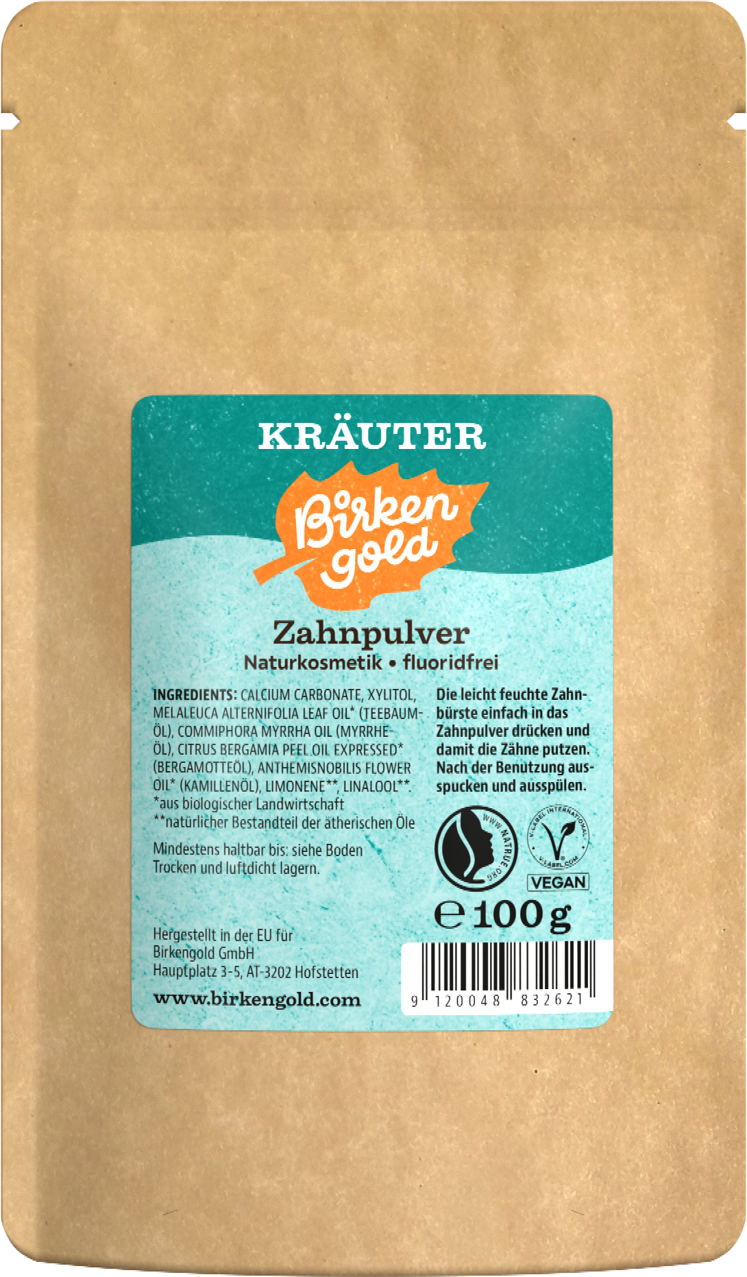 Birkengold Tannpulver Urter, Refillpakke 100 g