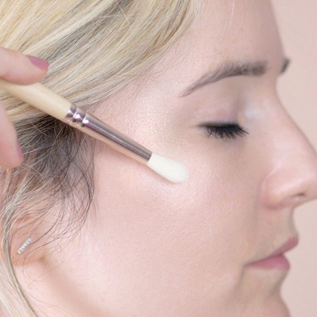 • Bruk rougebørsten nr.06 for å ta opp en liten mengde av pudderet og påfør forsiktig på de høyere ansiktspartiene, som kinnben og brynbuer.