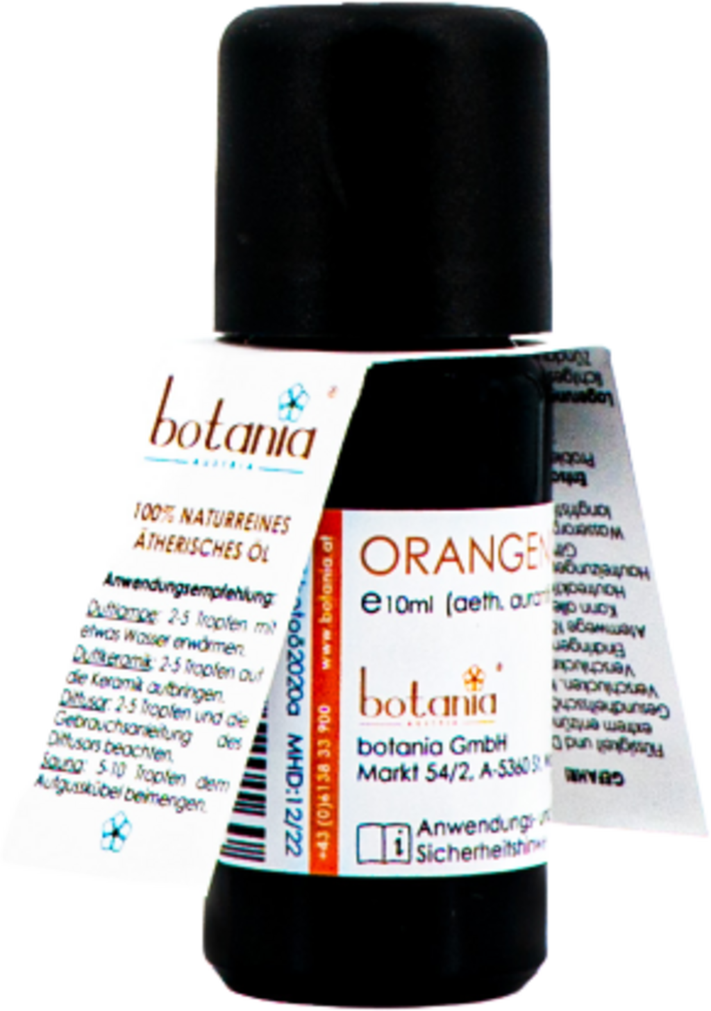 Duftende appelsinskall gir spesielt om vinteren en behagelig varme. Denne eteriske oljen inneholder den konsentrerte duften av appelsin og passer utmerket for romparfymering eller for en badstue. Oljen er utvunnet ved vanndampdestillasjon fra det ubehandlede skallet av appelsinen. Den dufter friskt og intenst.