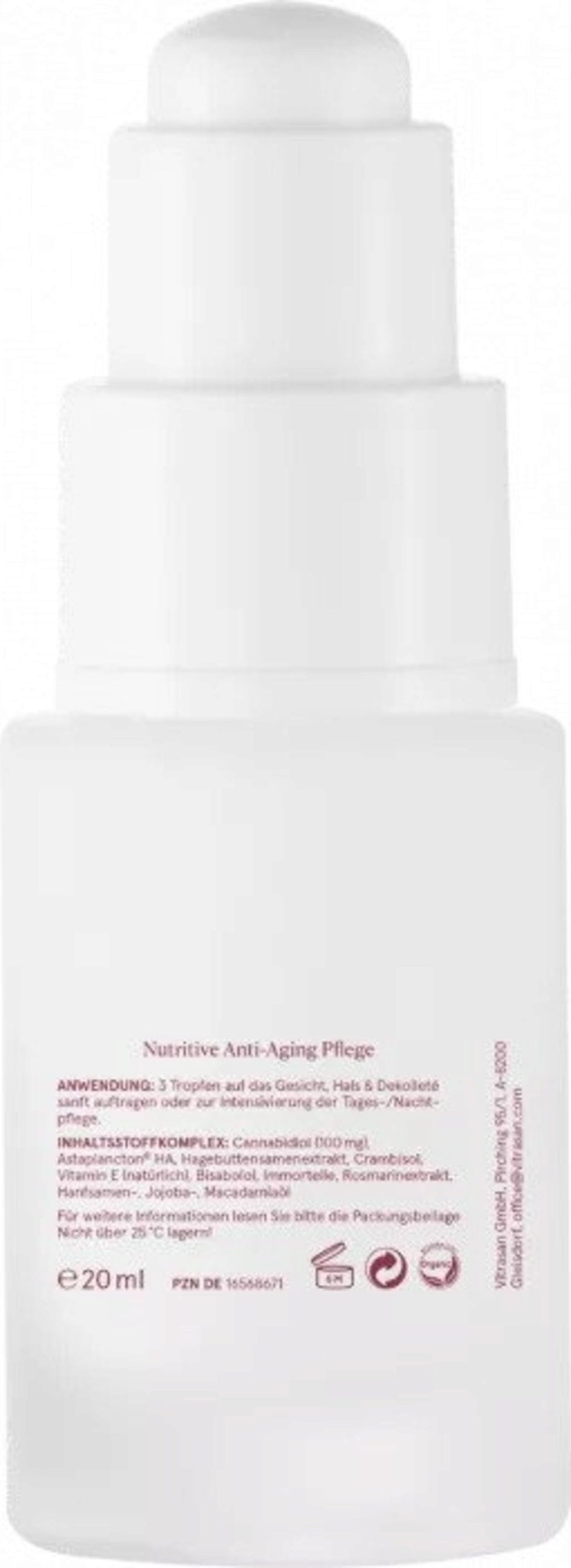 Denne oljen intensiverer dag- og nattpleien. Olje fra hampfrø stimulerer cellefornyelsen, mens ekstrakt fra nyperosefrø fremmer elastisitet og dermed reduserer hudens naturlige aldringsprosess. Samtidig beskytter antioksidanter huden mot skadelige miljøpåvirkninger. For synlig mer utstråling.