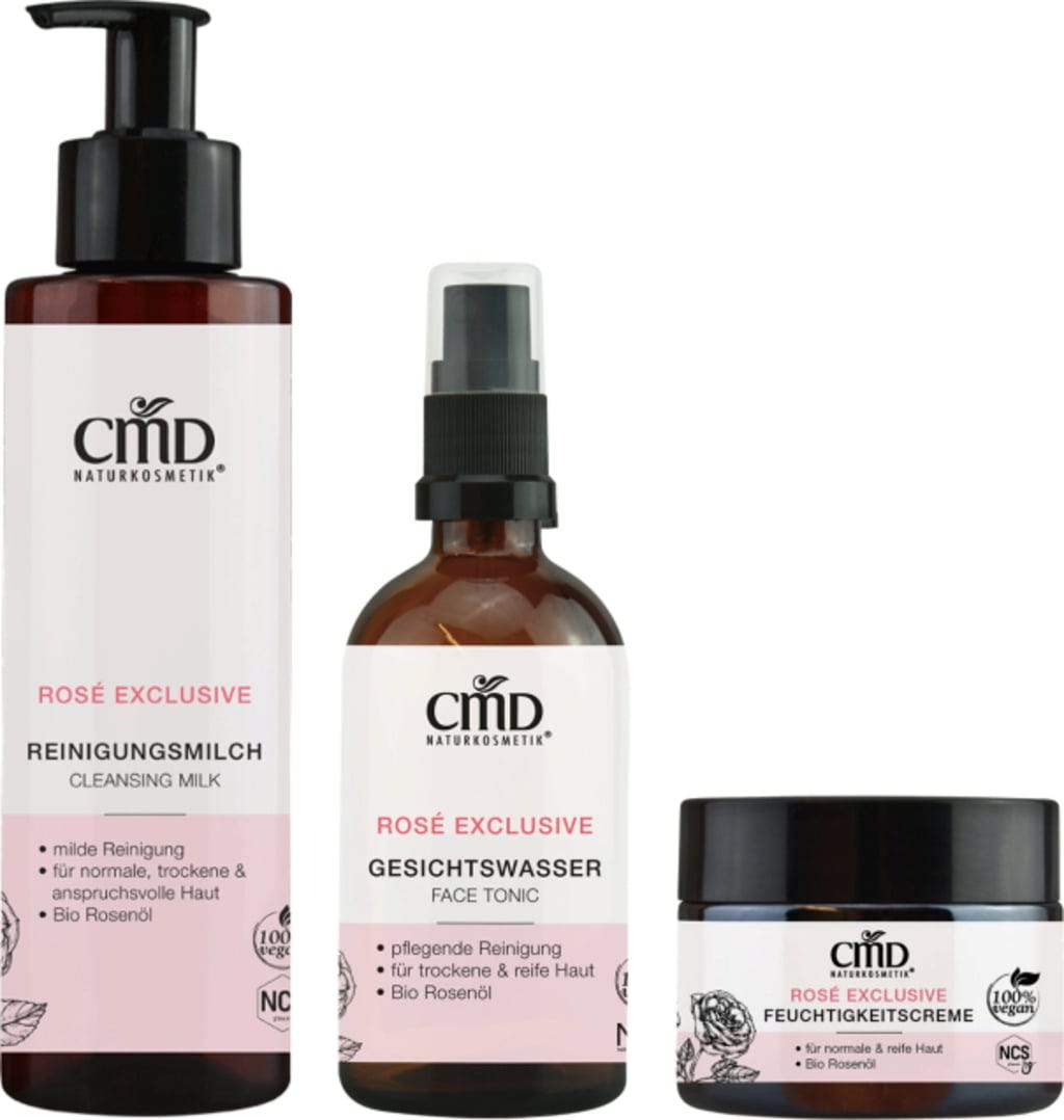 Det Villa Rosé Exclusive pleiesettet er den ideelle trioen for å forvandle den daglige pleierutinen til et kjærlig, omsorgsfullt velværeøyeblikk. Med en delikat duft, omsluttende og fylt med naturlige ingredienser, gir den harmonisk avstemte kombinasjonen av mild renser, ansiktsvann og rik fuktighetskrem optimal pleie.
