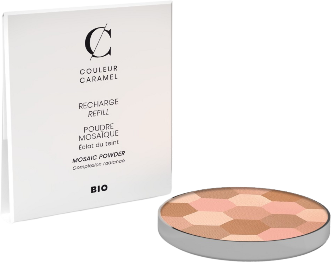 Mosaikkpudderet kan enkelt og raskt fylles på med refill. Det gir en vakker glød og en jevn, frisk hudfarge mens pleiende økologiske oljer med anti-aldringsegenskaper gir næring til huden.