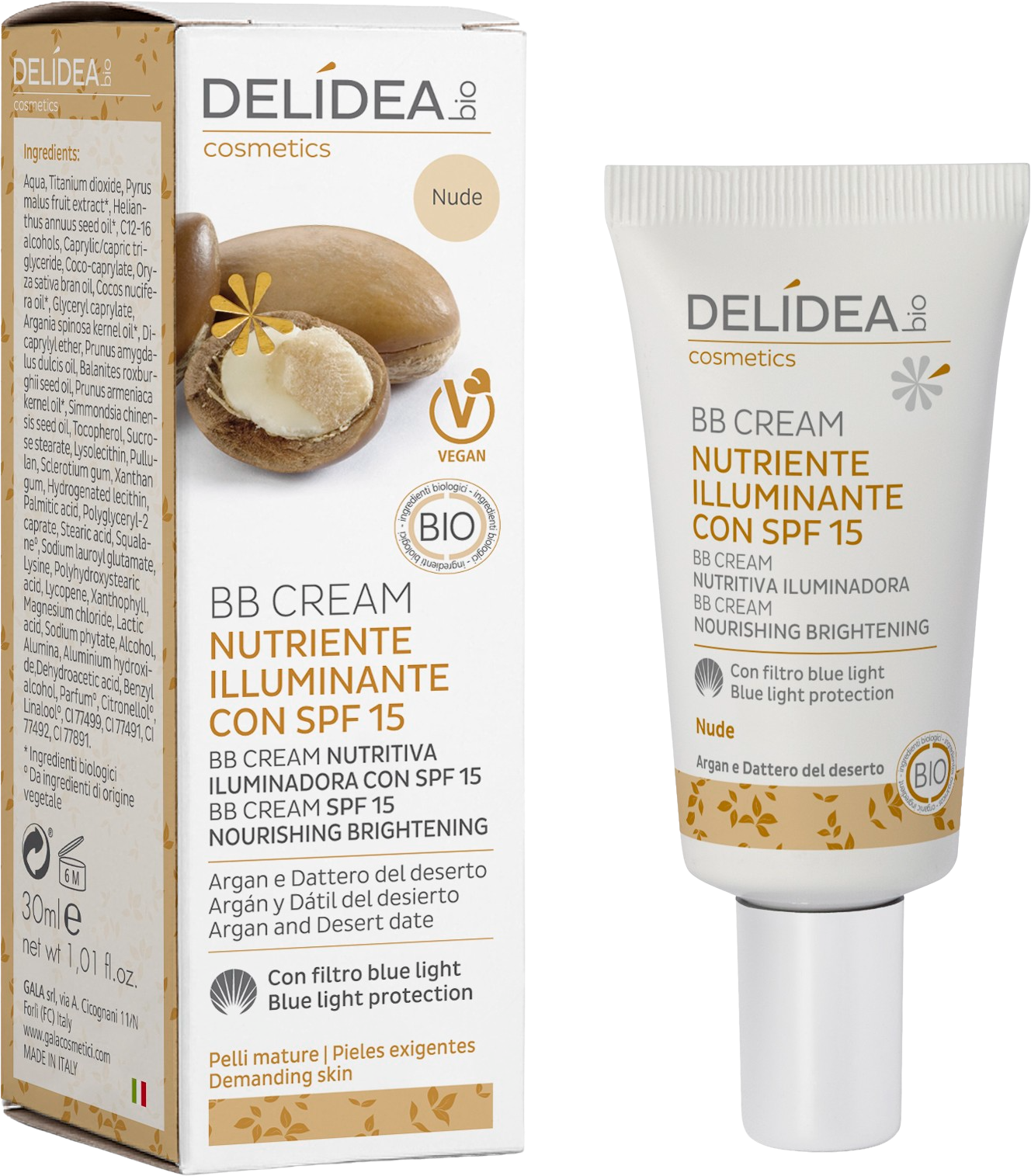 DELIDEA Argan & Date Nourishing & Brightening BB Cream SPF 15, Nude (30 ml)