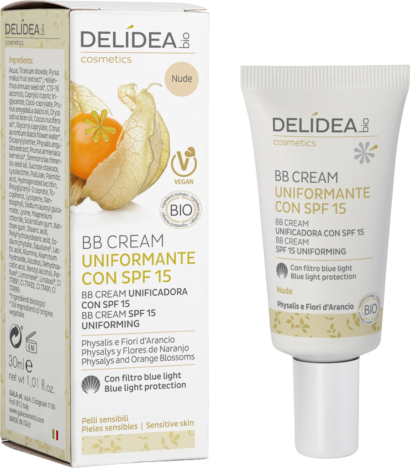 DELIDEA Physalis og Appelsinblomst Jevnende BB Cream SPF 15, 30 ml