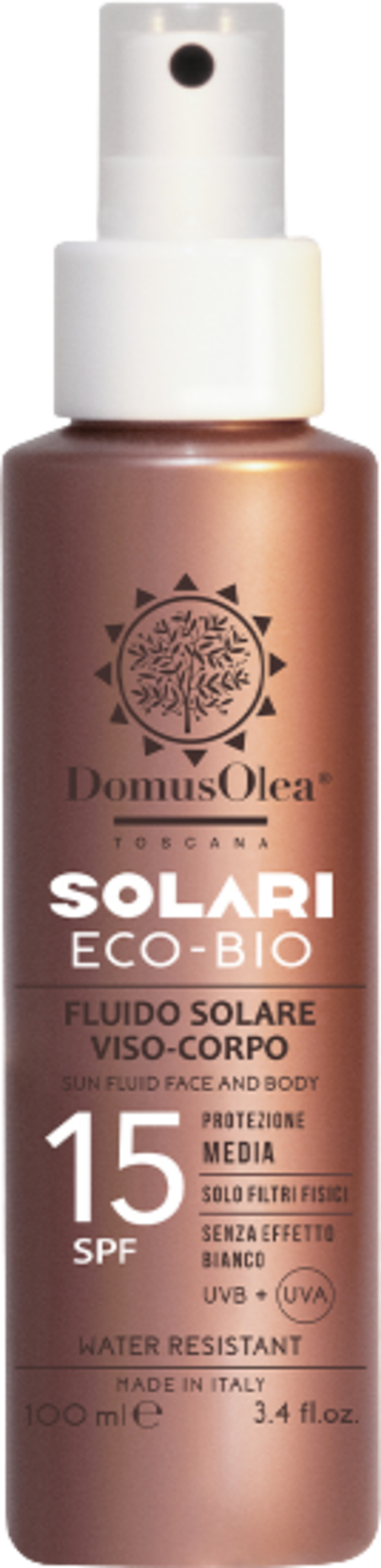 Domus Olea Toscana Solfluid for ansikt og kropp SPF 15, 100 ml