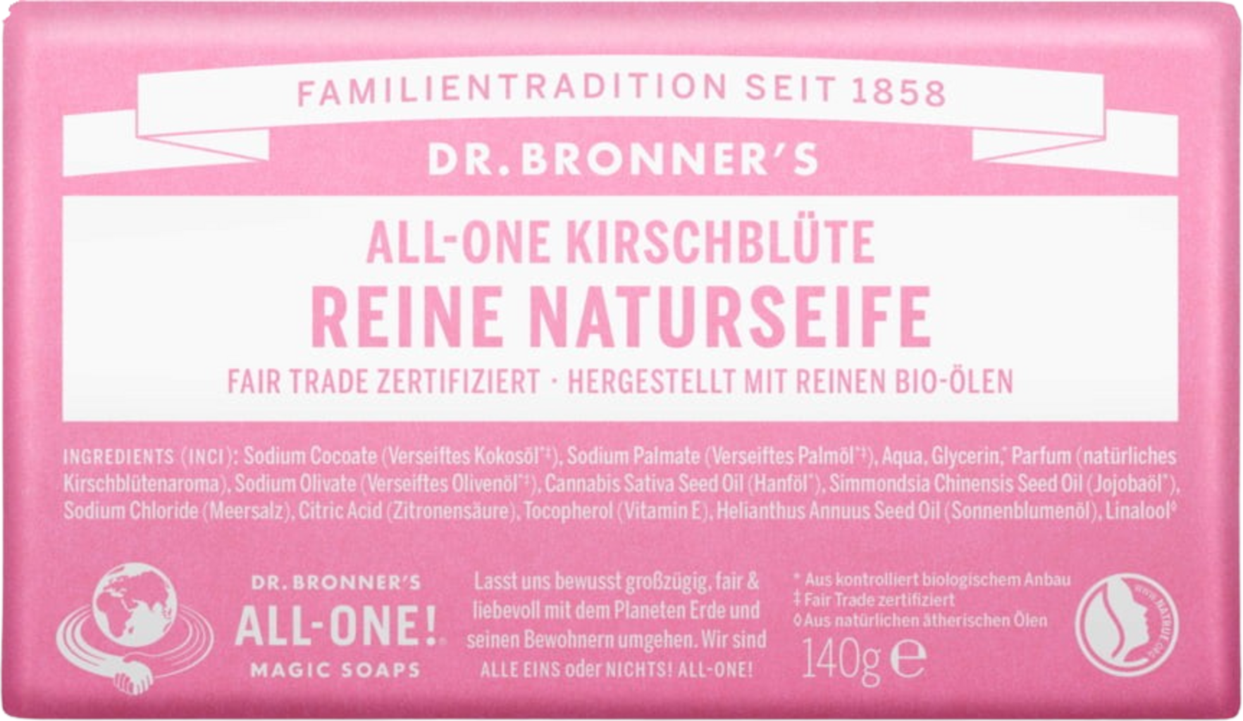 Dr. Bronner’s Bar Såpe Kirsebærblomst, 140 g kr 73 (kr 521 / kg)