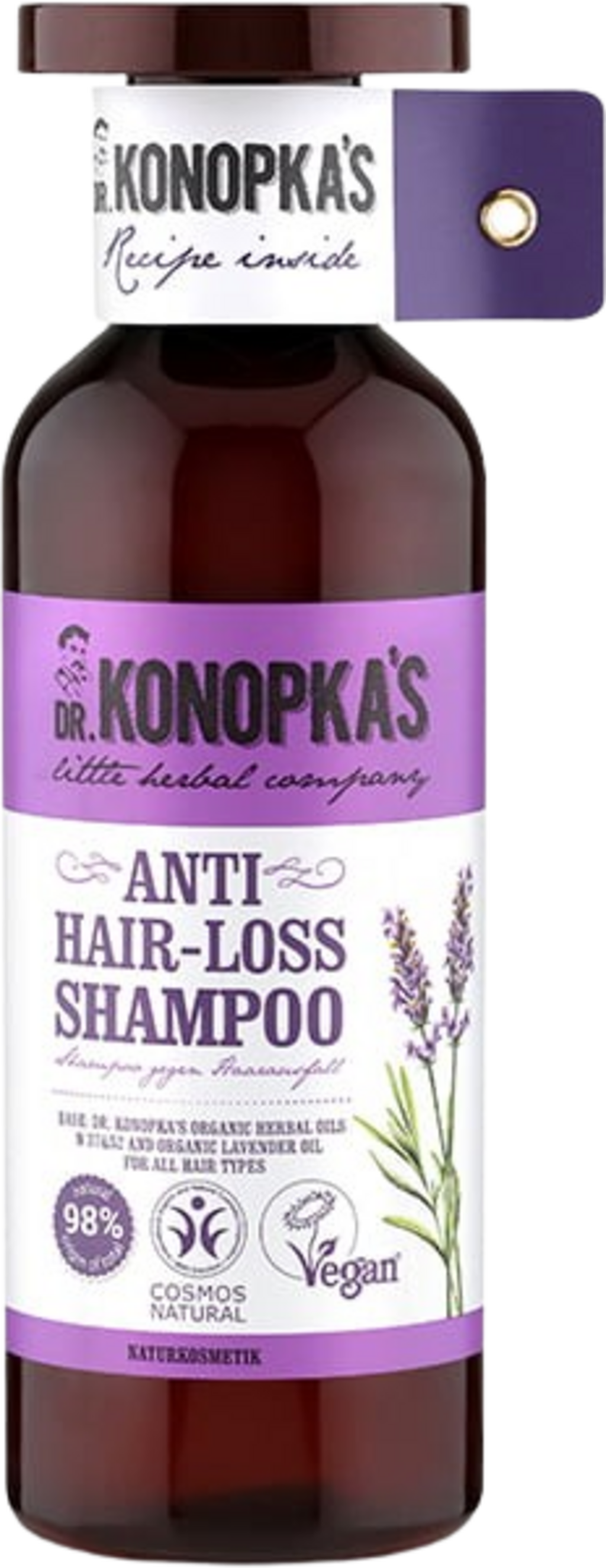 Anti Hair-Loss Shampoo fra Dr. KONOPKA'S er ideell for hår som tynnes ut. Den inneholder lavendelolje, som bidrar til å styrke hårrøttene og gi håret ny glans.
