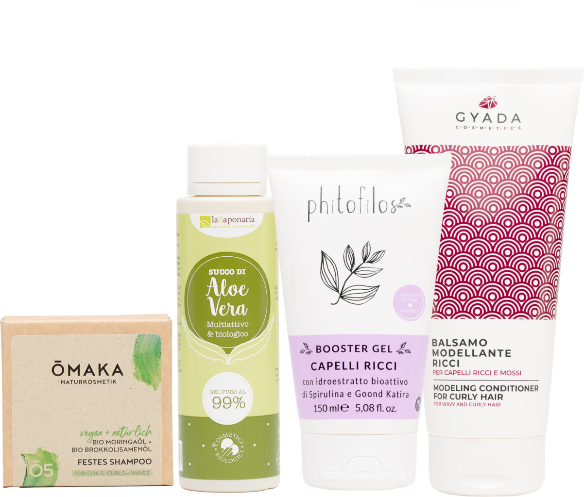 Dette settet inneholder fire produkter for omfattende pleie av krøller og krusete hår. Alle produktene er godkjent i henhold til Curly Girl Method og spesielt tilpasset behovene til krøllete hår. Det faste sjampoet renser skånsomt, men effektivt, og er svært drøyt i bruk. Til å pleie håret etter vask anbefales den modellerende krølle-conditioneren som gir næring og glans. Aloe Vera-gelen kan påføres håndkletørt hår før styling for ekstra fuktighetspleie. Etterpå påføres krølleboosteren før tørking for å gi krøllene definisjon, støtte elastisiteten og kontrollere dem.