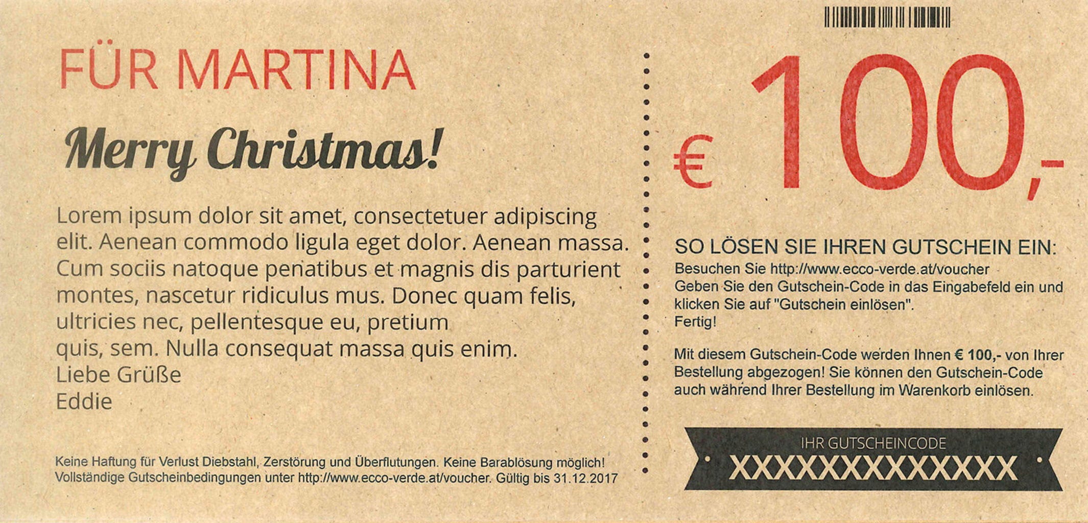 Ecco Verde Fin Jul - Gavekort, "Nice Christmas" gavekort