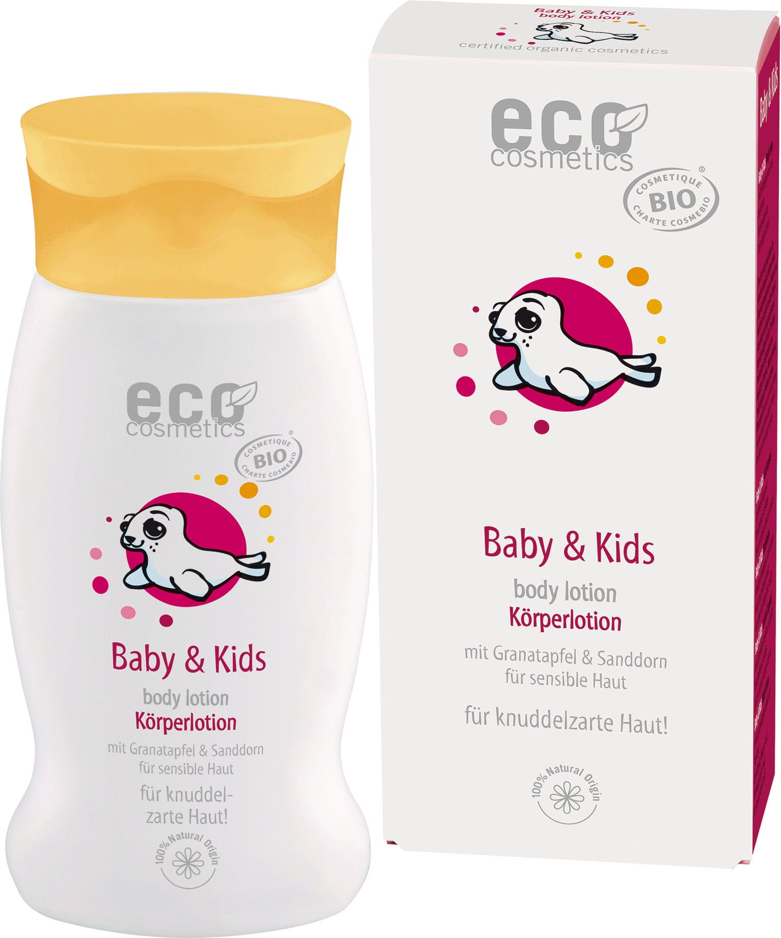 Spesielt utviklet for pleie av sart baby- og barnehud, er denne kroppslotionen rik på rene og høykvalitets økologiske oljer som gir beskyttelse og fuktighet. Takket være økologisk sheasmør og jojobaolje gir den intensiv pleie og virker hudberoligende, mens ekstrakter av økologisk granateple optimaliserer hudens fuktnivå og motvirker tørrhet. Denne rike formuleringen bevarer hudens glatthet og smidighet, noe som gjør lotionen til den optimale pleien etter et bad eller en dag i solen. Naturlige og allergivennlige essensielle oljer gir en mild duft.