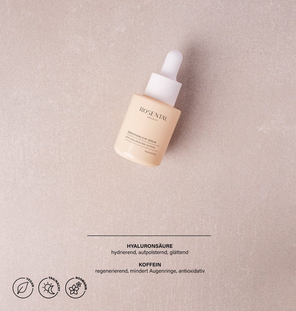 Med Smoothing Eye Serum fra Rosental Organics blir små linjer fylt ut og den delikate huden rundt øynene fuktet og opplyst, takket være den kraftige duoen hyaluronsyre og koffein. Slik forberedes øyeområdet ditt perfekt for neste steg i hudpleierutinen.