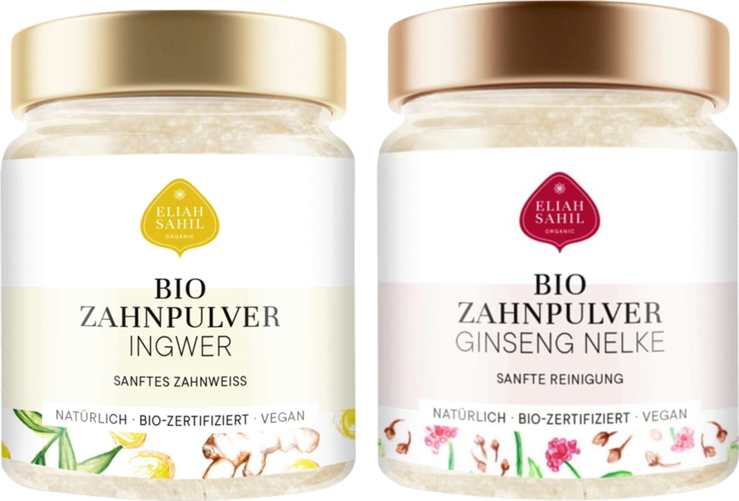 Dette tannpulver-duoet tilbyr en skånsom rengjøring uten irriterende tensider eller fluorider. Begge produktene er fullstendig naturlige, veganske og plastfritt pakket. De rengjør tennene grundig og pleier takket være de verdifulle aktivstoffene tannkjøttet.